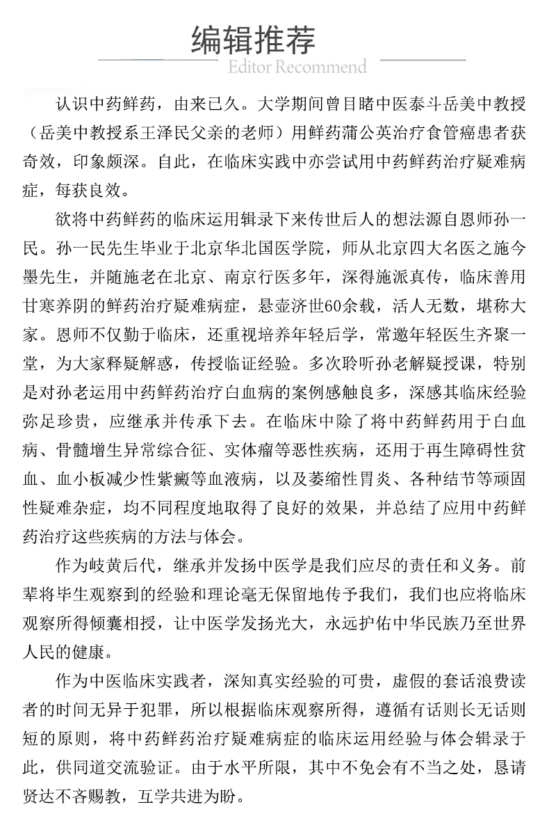 中药鲜药治疗疑难病症 王泽民 齐淑兰 临床常用药 白血病食管癌胃炎贫血等病症临床效验 中医学 中国医药科技出版社9787521427318