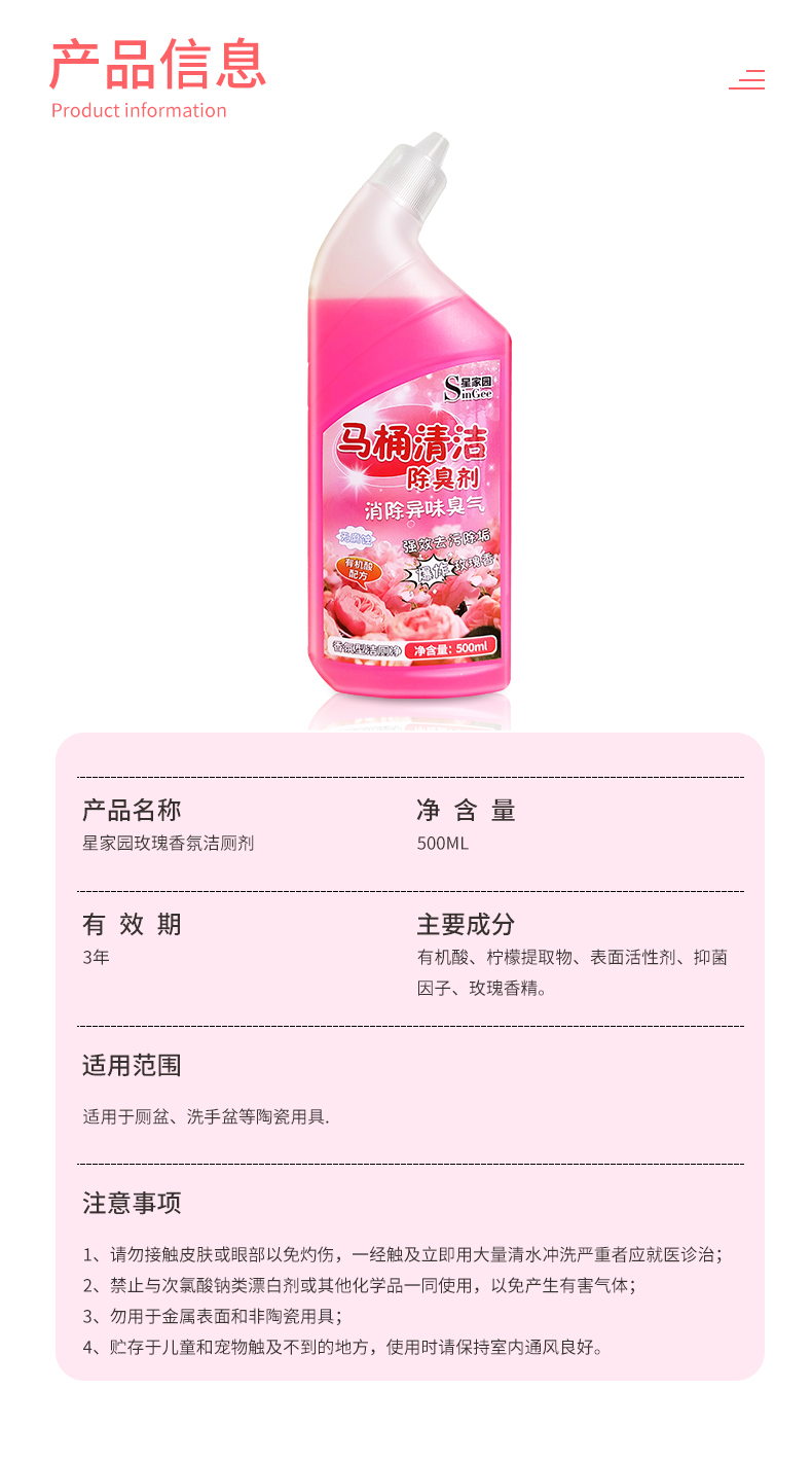 星家园-爆炸玫瑰香马桶抑菌清洁剂