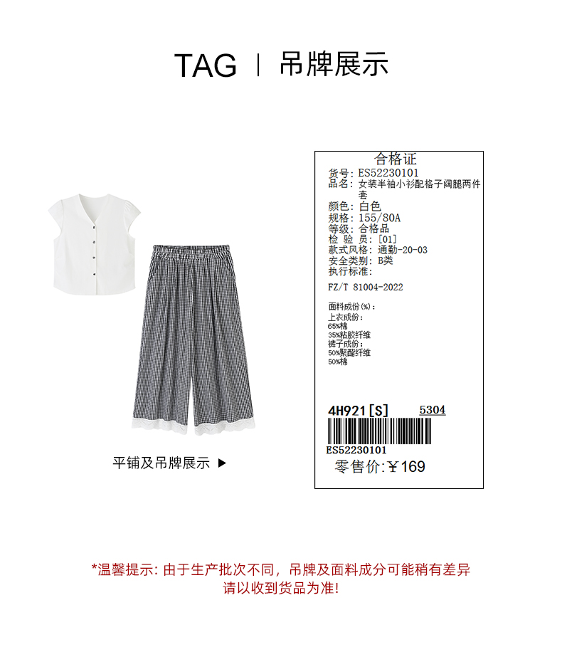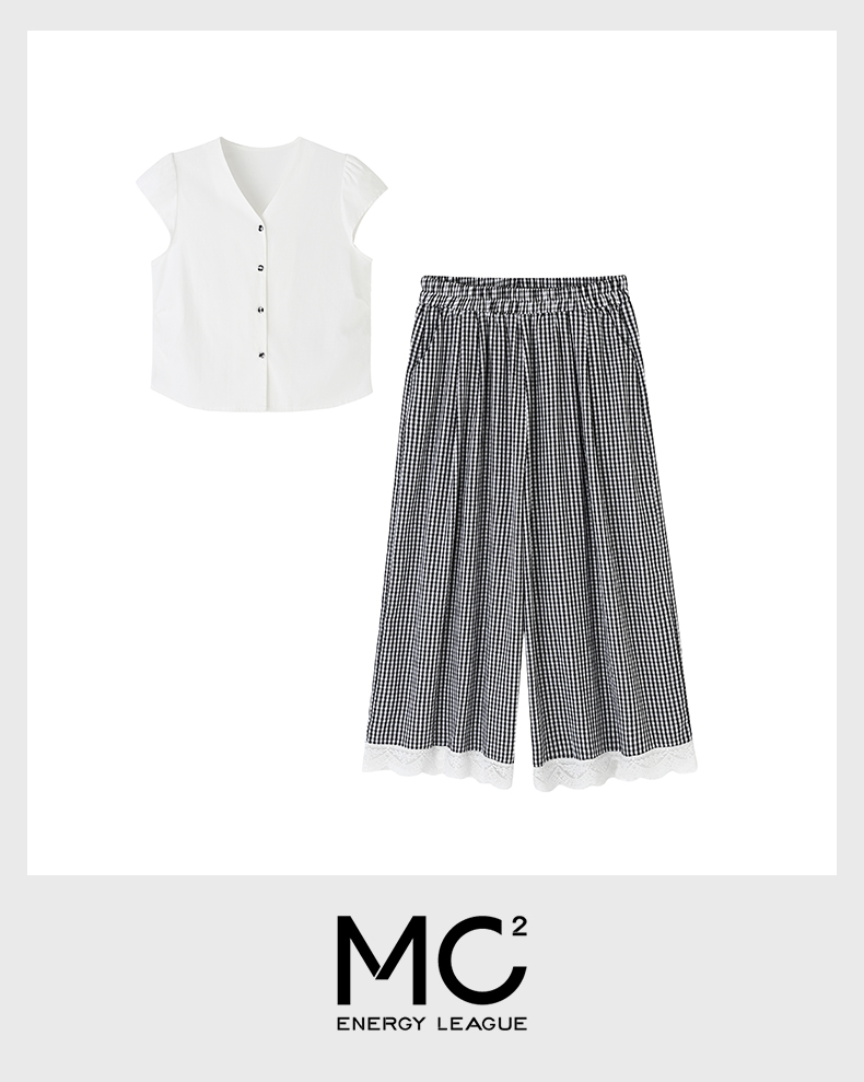 女装半袖小衫配格子阔腿两件套S5223010