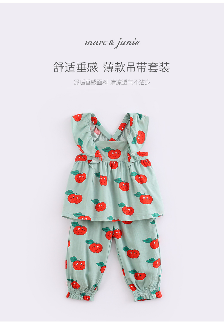 马克珍妮夏装女童薄款吊带荷叶边套装220769