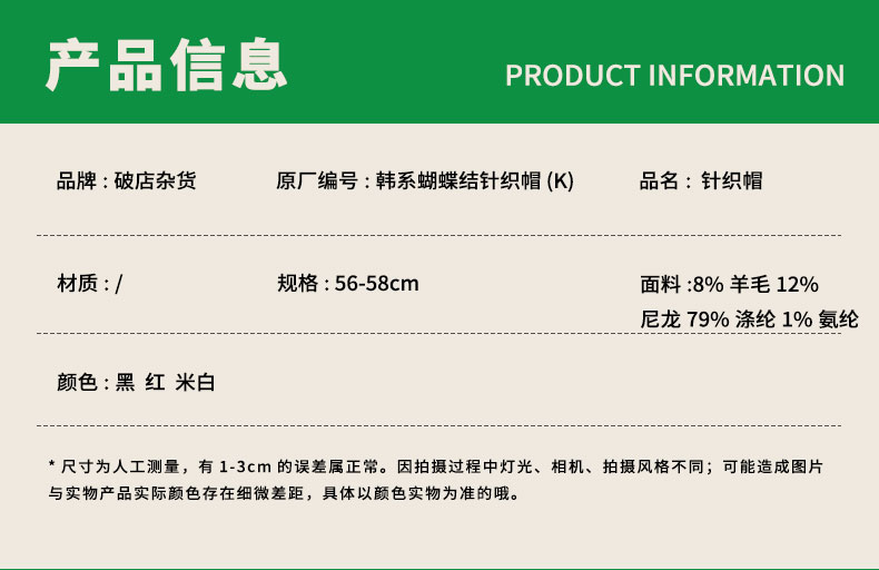 时尚百搭韩系蝴蝶结针织帽-纪念日百货门店同款165201177