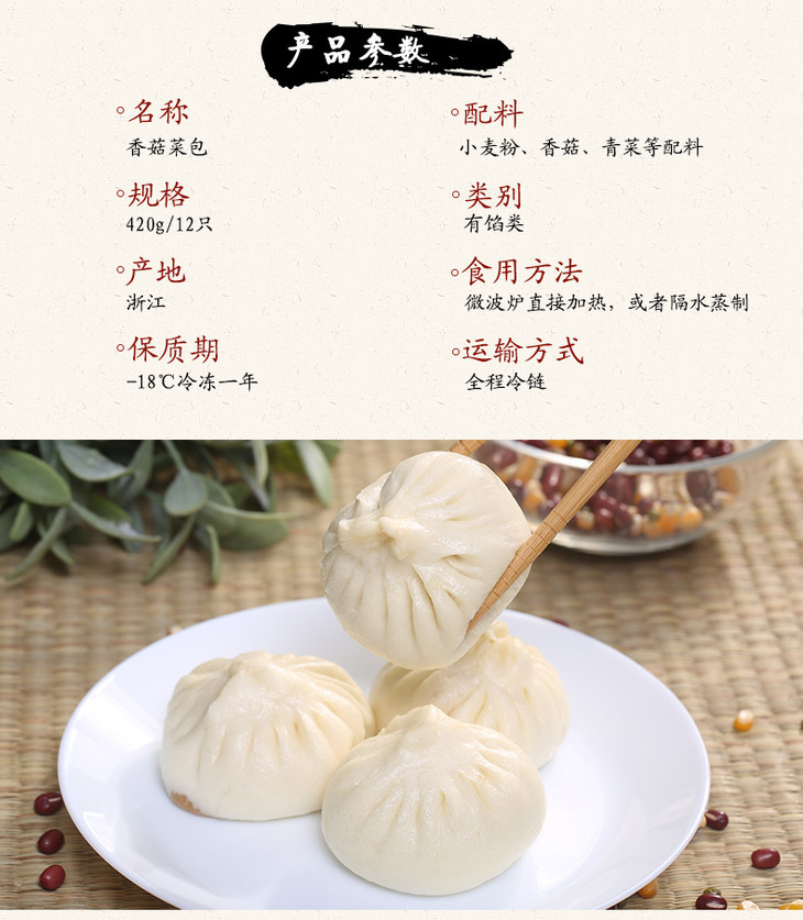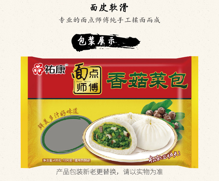 【包邮套餐】祐康面点师傅420g香菇菜包*3包