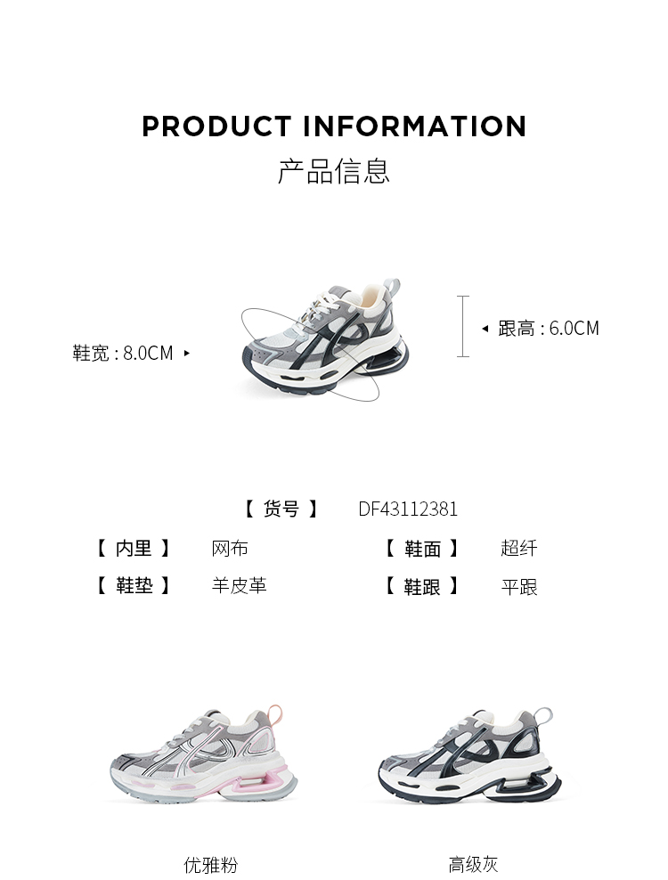 D:FUSE迪芙斯秋季新款厚底增高水钻老爹鞋休闲运动鞋DF43112381