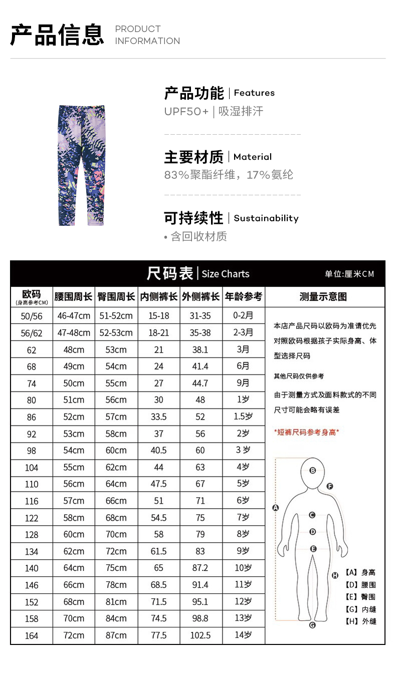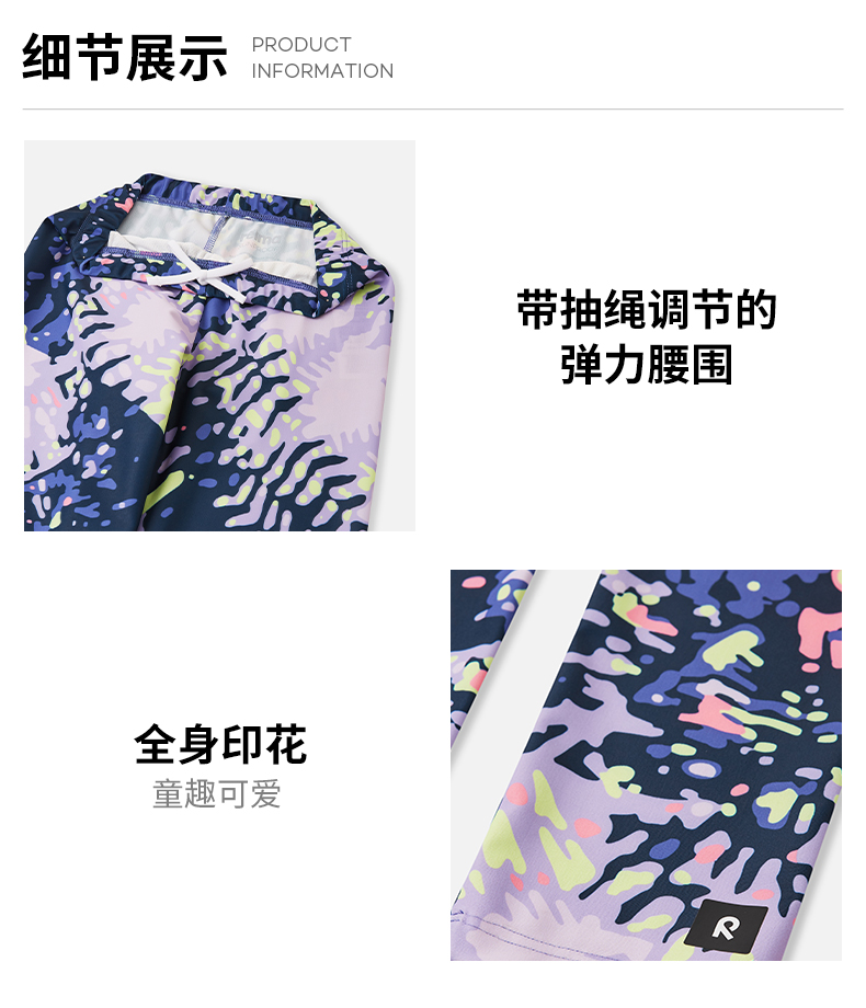 芬兰Reima2025春夏男女中童吸湿排汗针织印花户外防晒运动紧身裤