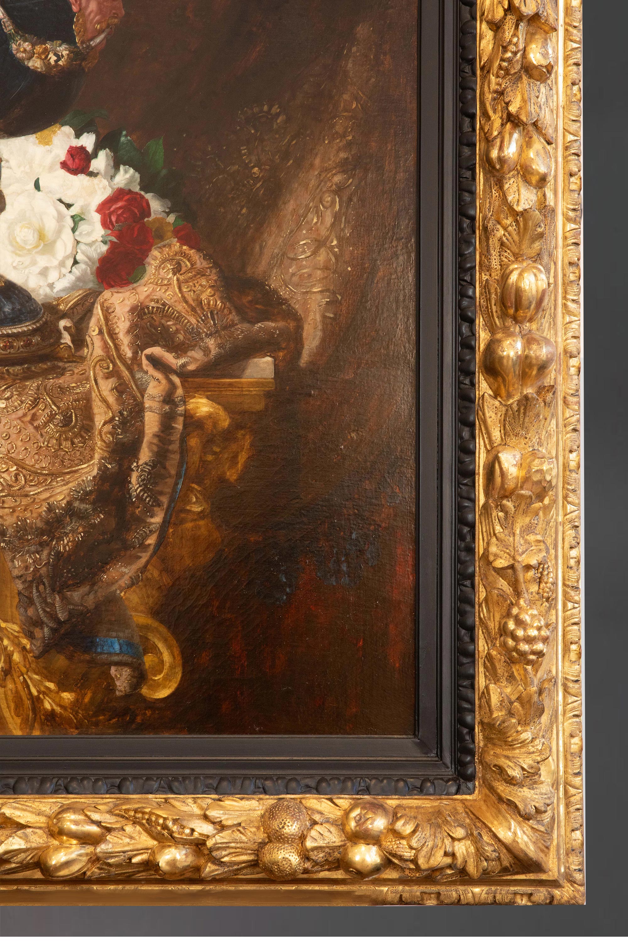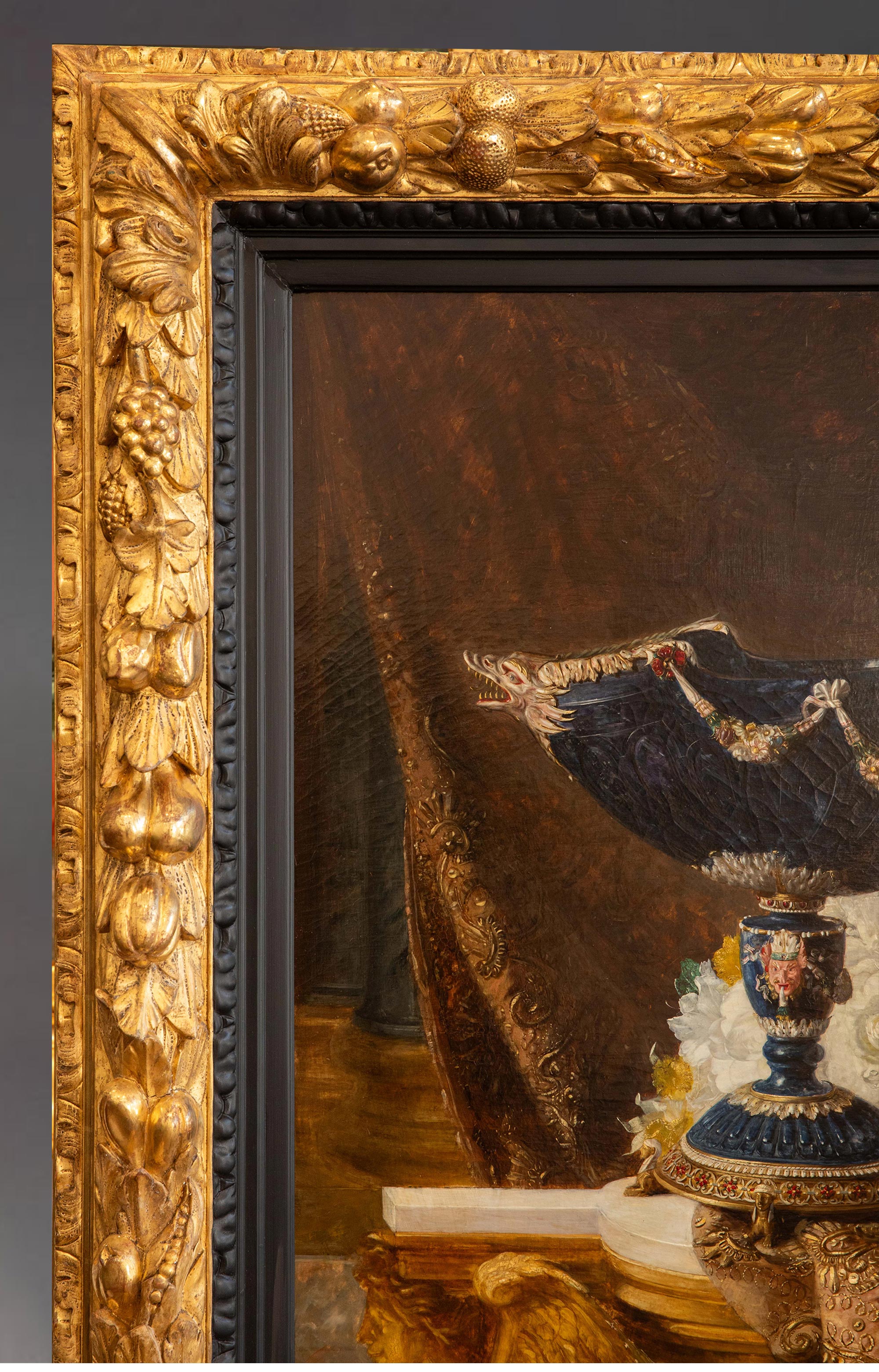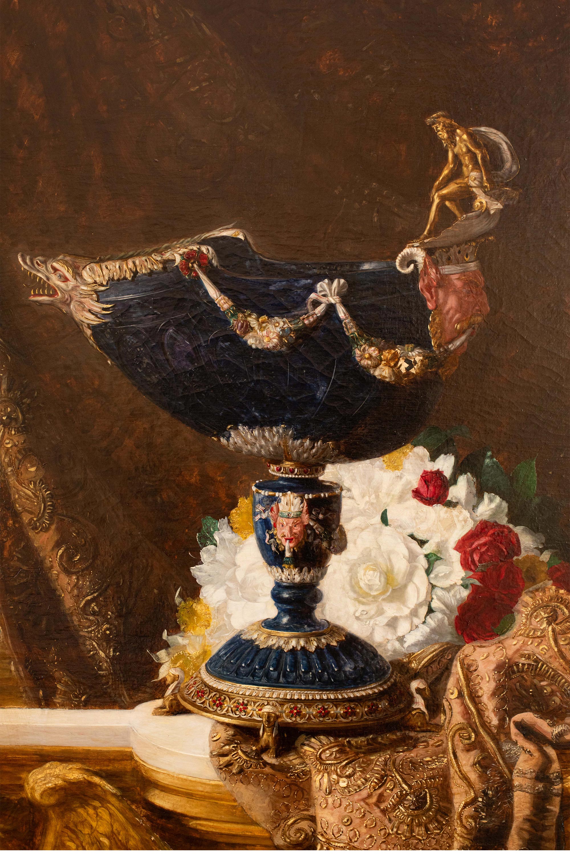 1882年代法国画家Blaise Desgoffe签名创作静物主题油画作品《卢浮宫的青金石宝船》