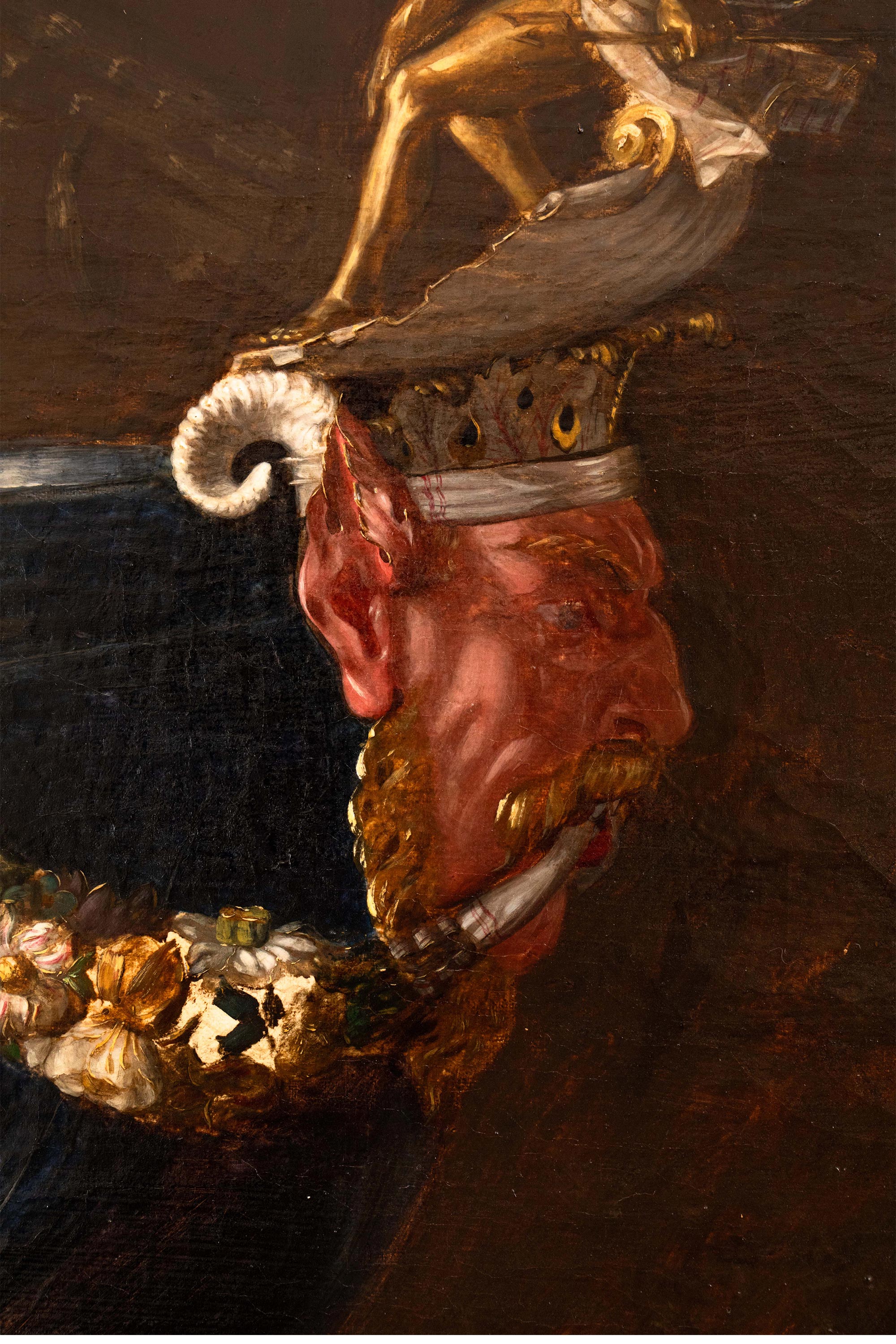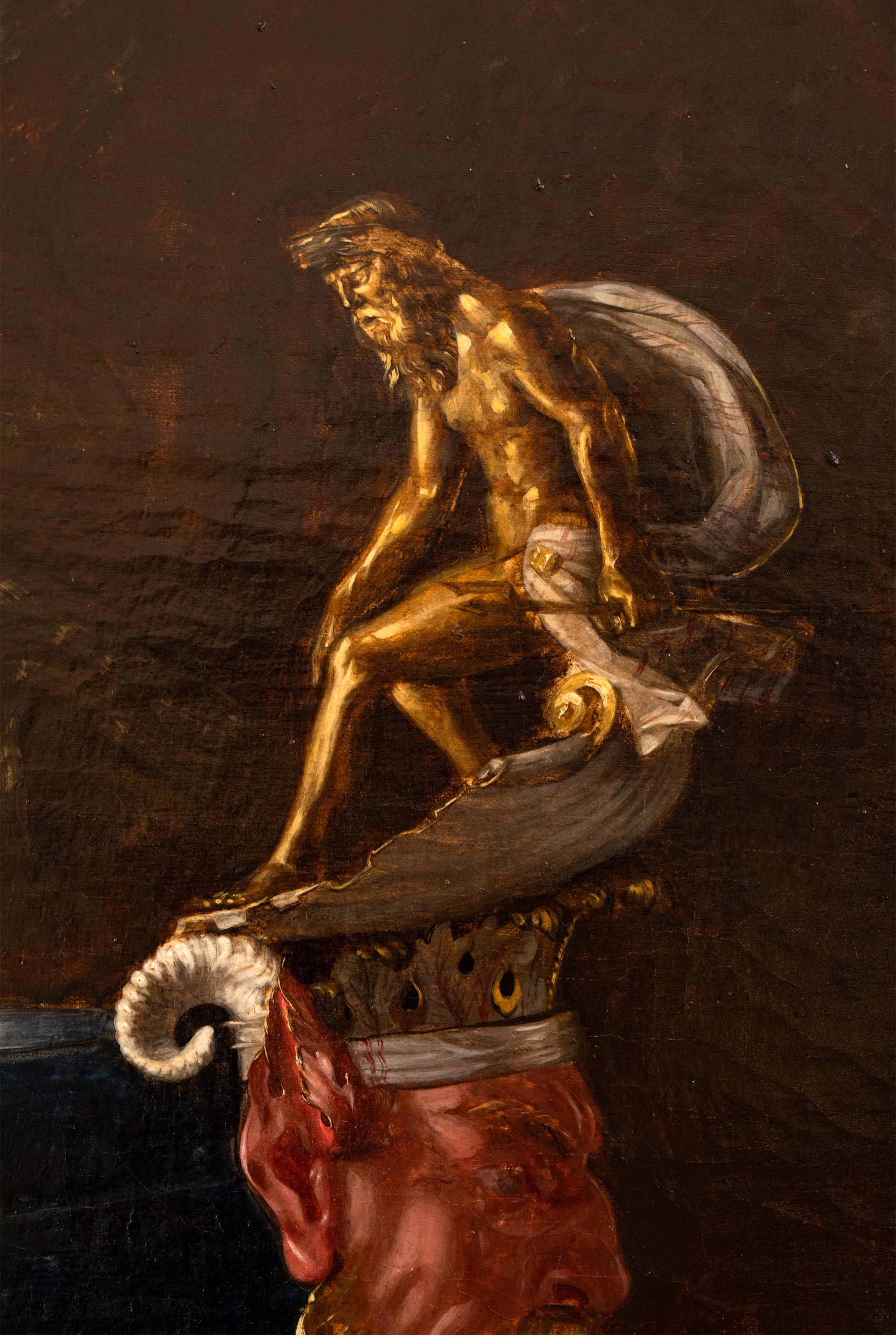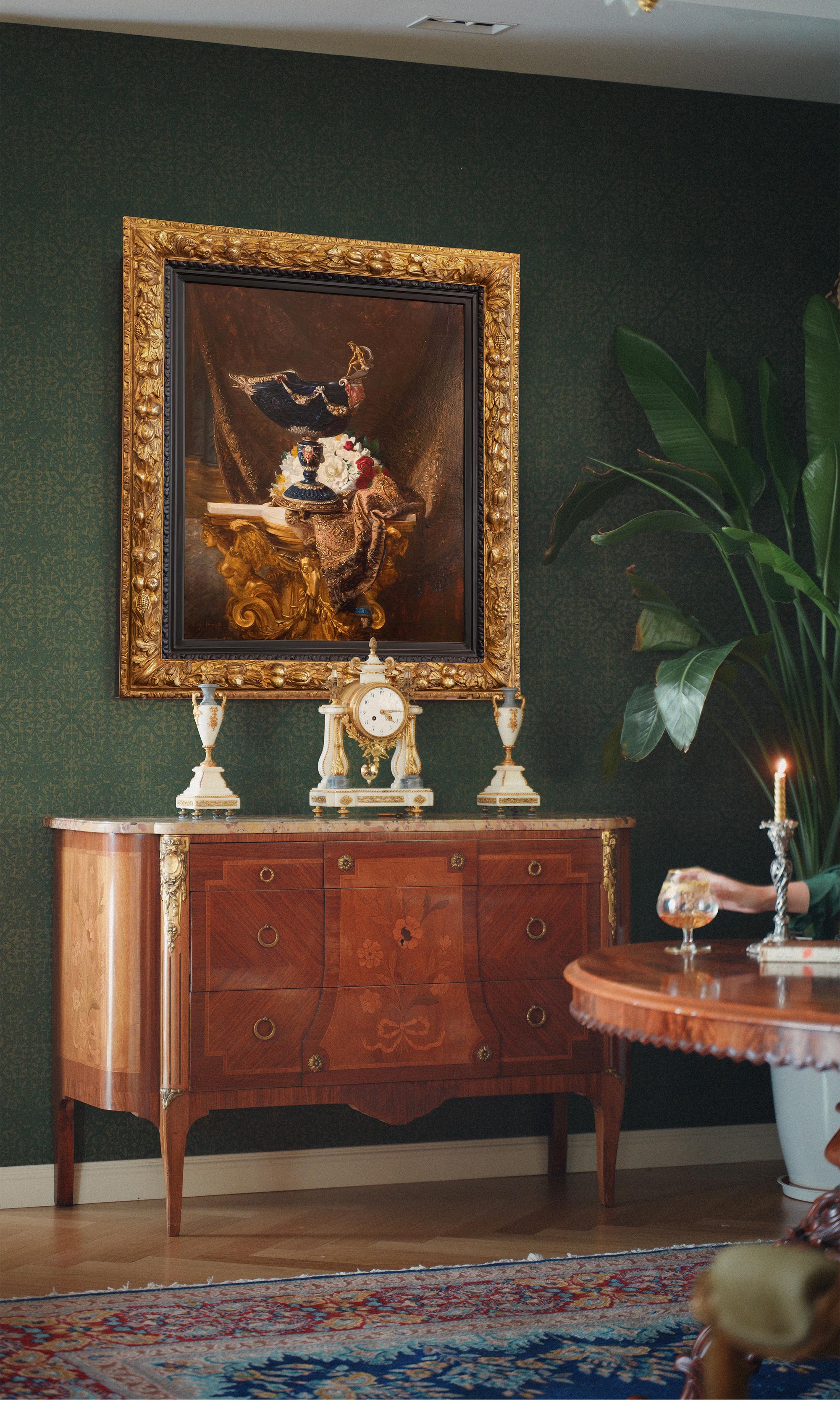 独角鹿西洋古董 1882年代法国画家Blaise Desgoffe签名创作静物主题油画作品《卢浮宫的青金石宝船》