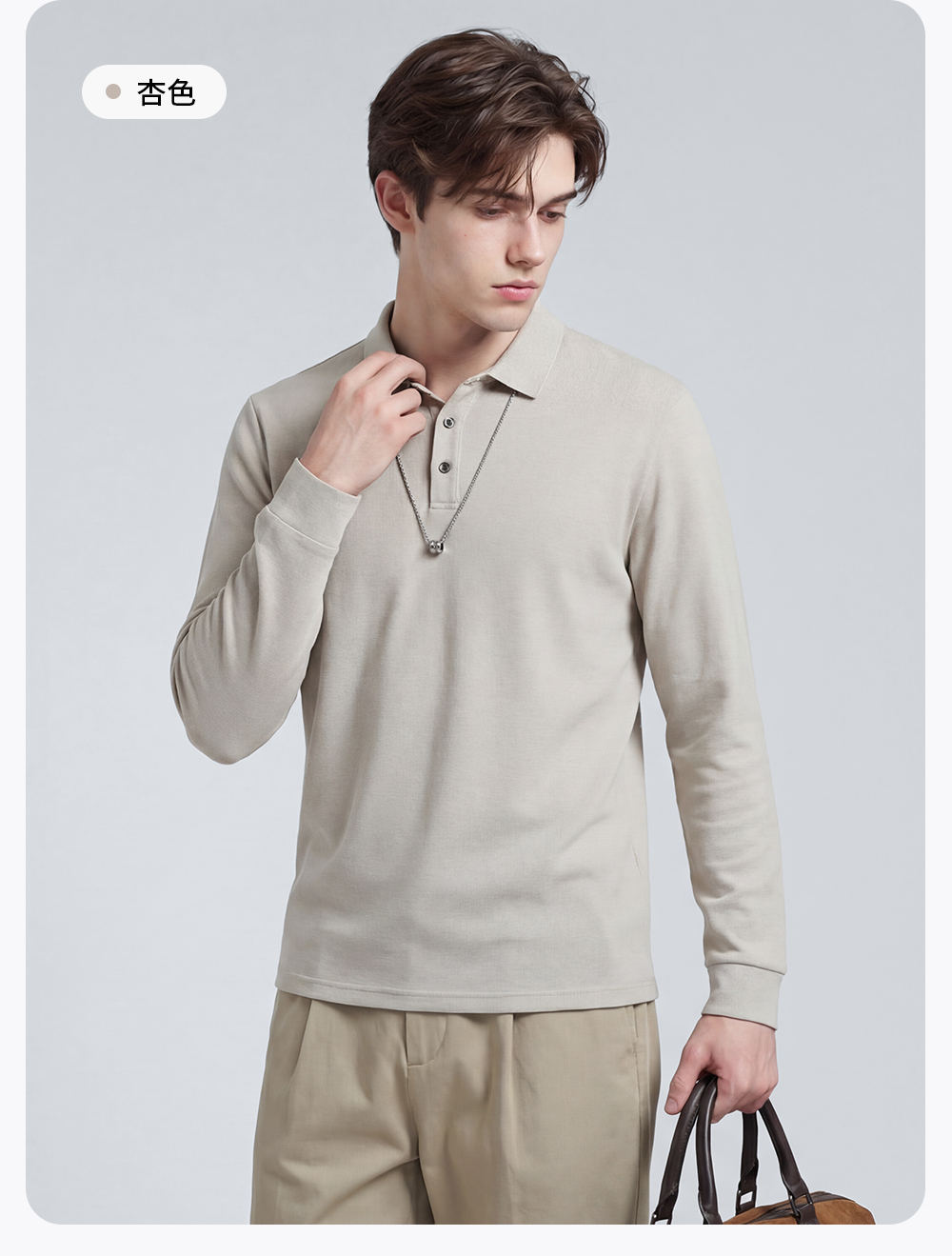 【含绵羊毛】圣得西男士长袖polo衫2026新款春季亲肤舒适商务上衣