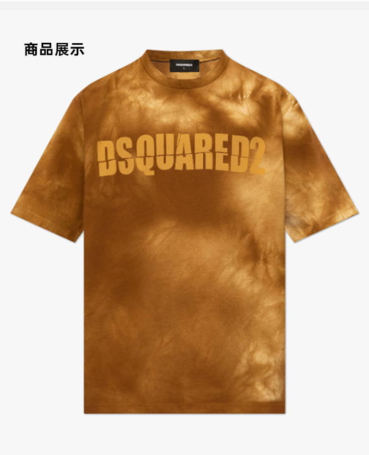 【一】DSQUARED2 男士字母徽标印花棉质平纹针织圆领短袖T恤 棕色 S74GD1306 S22427 133