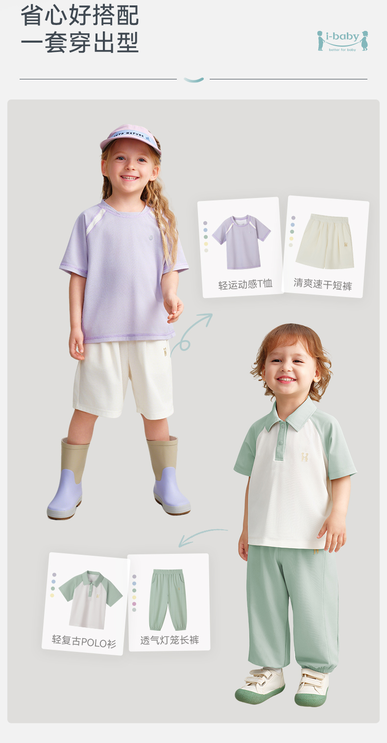 【2026春夏新品】ibaby×outlast太空科技恒温动感珠地短袖POLO衫圆领T恤短裤长裤