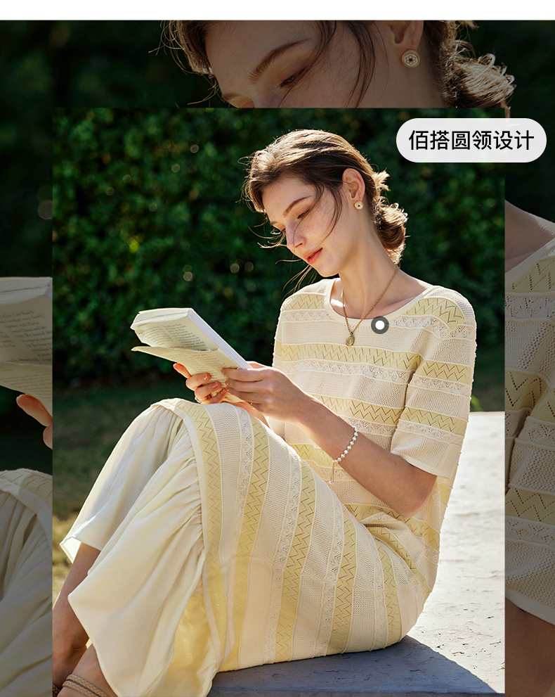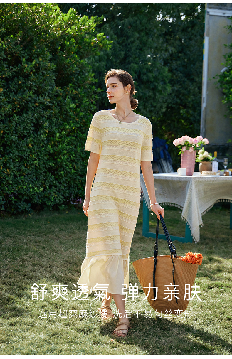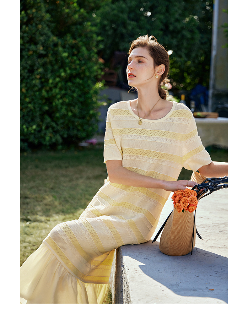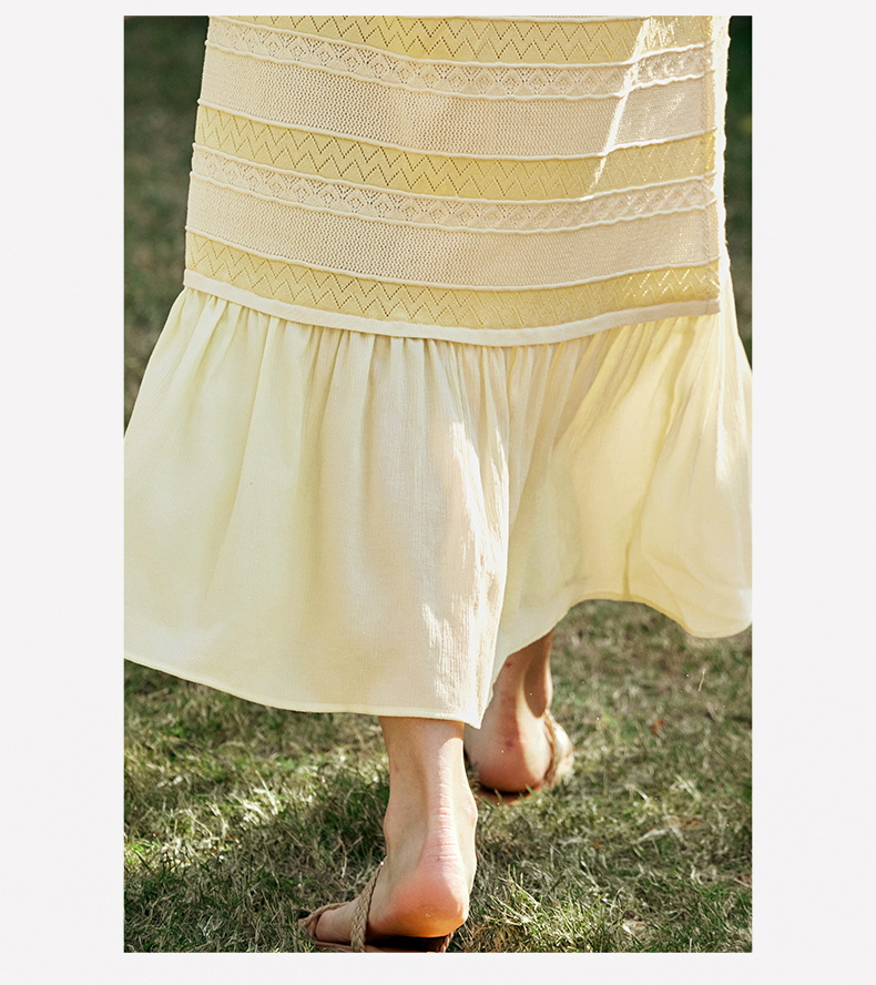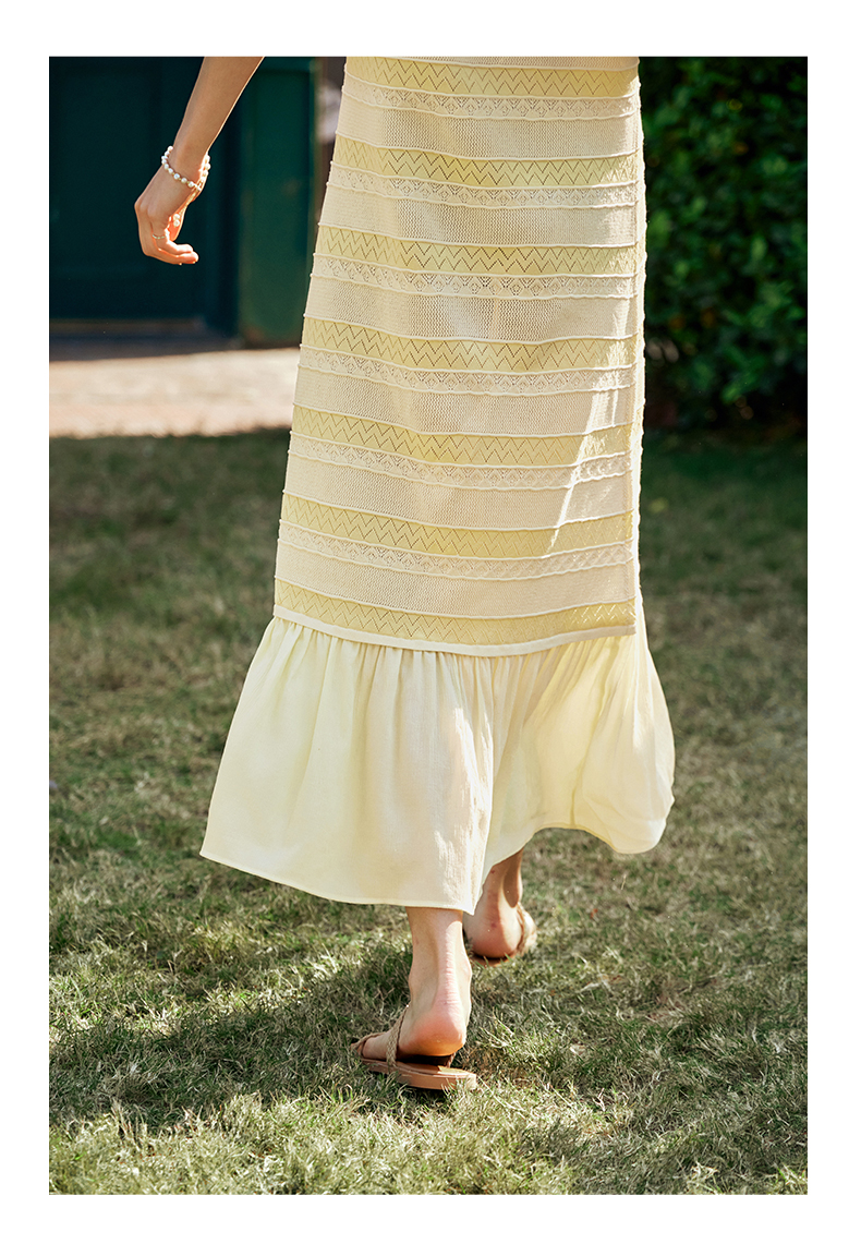 OLrain欧芮儿法式连衣裙女早春2024年新款气质镂空拼接针织裙