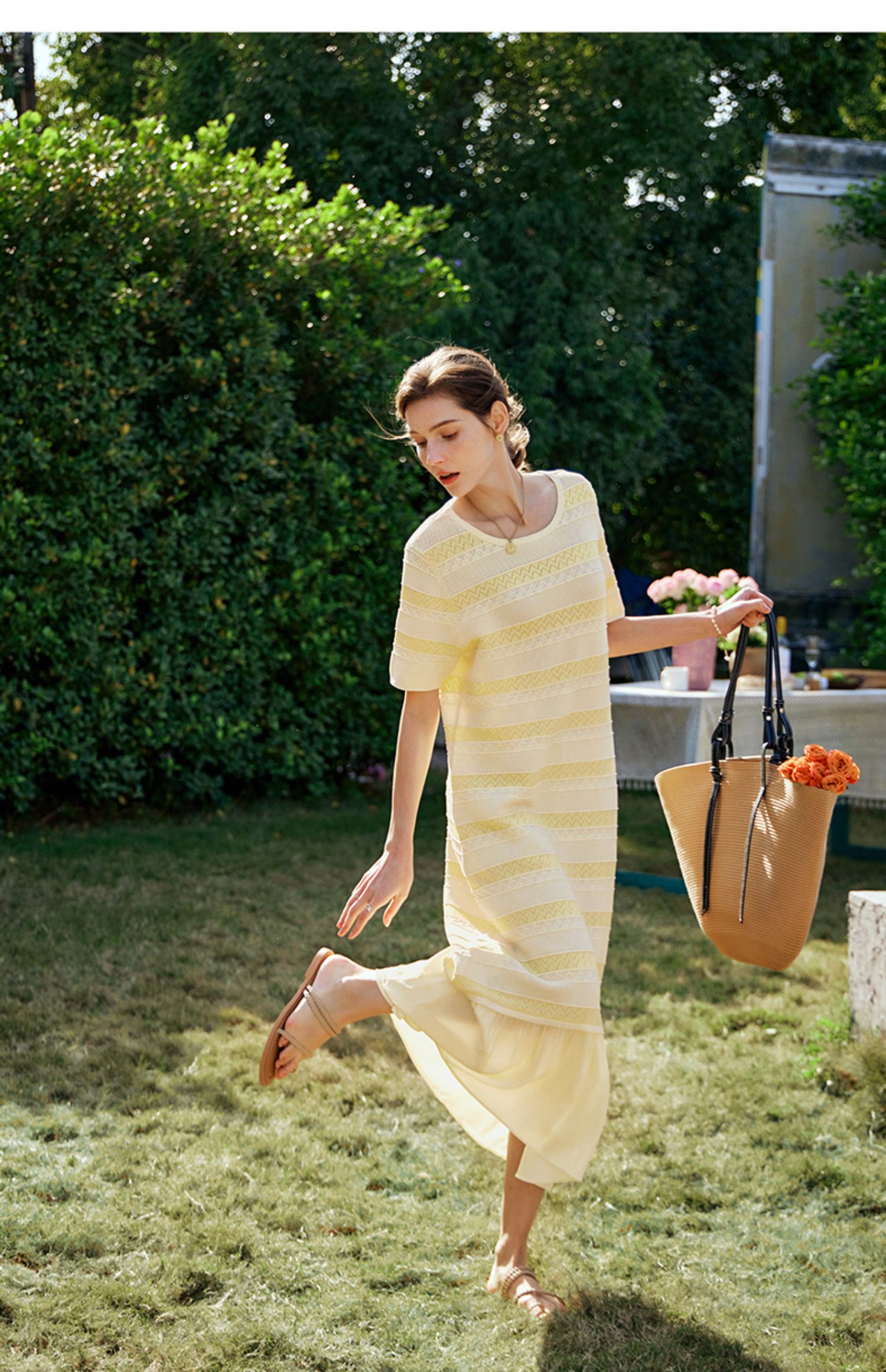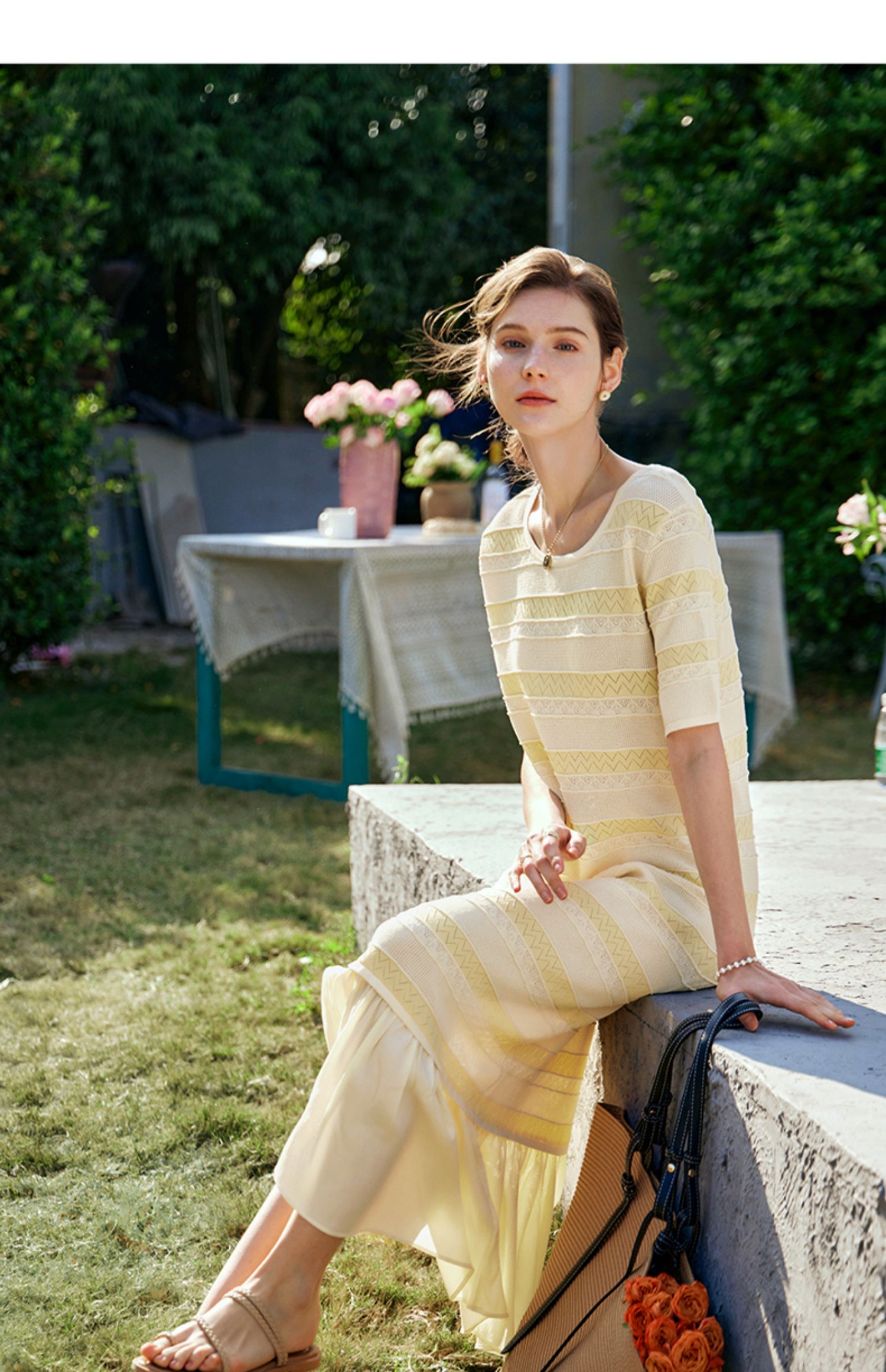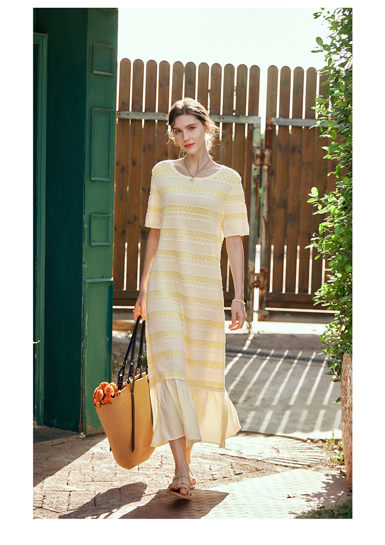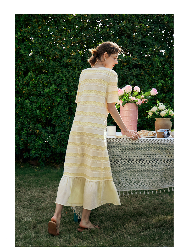 OLrain欧芮儿法式连衣裙女早春2024年新款气质镂空拼接针织裙
