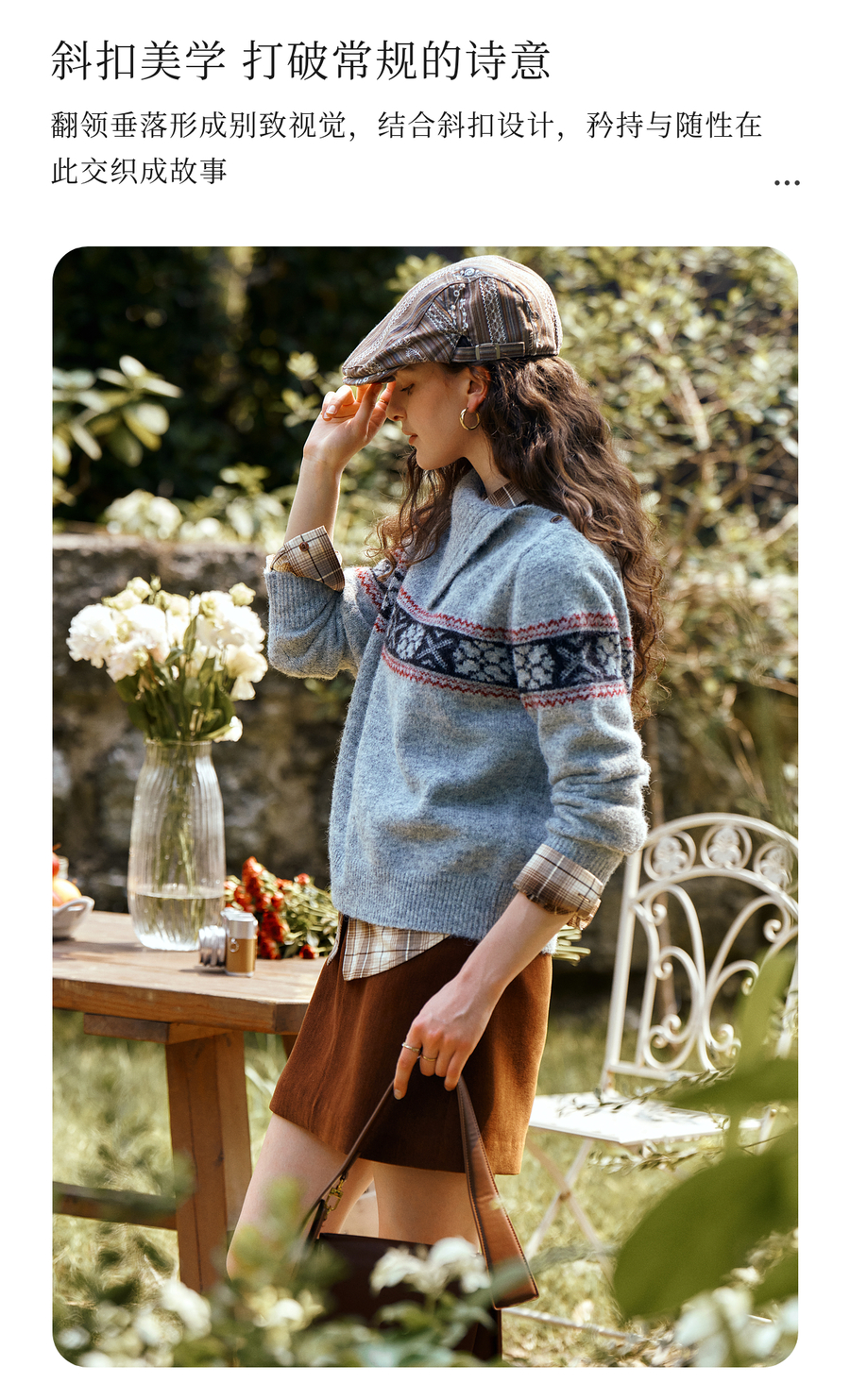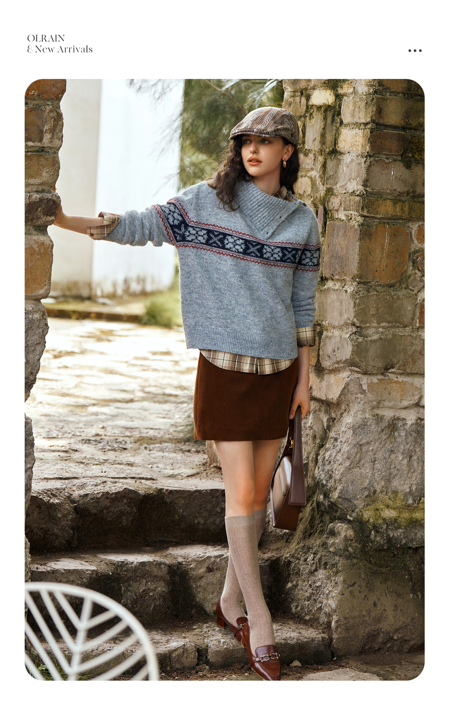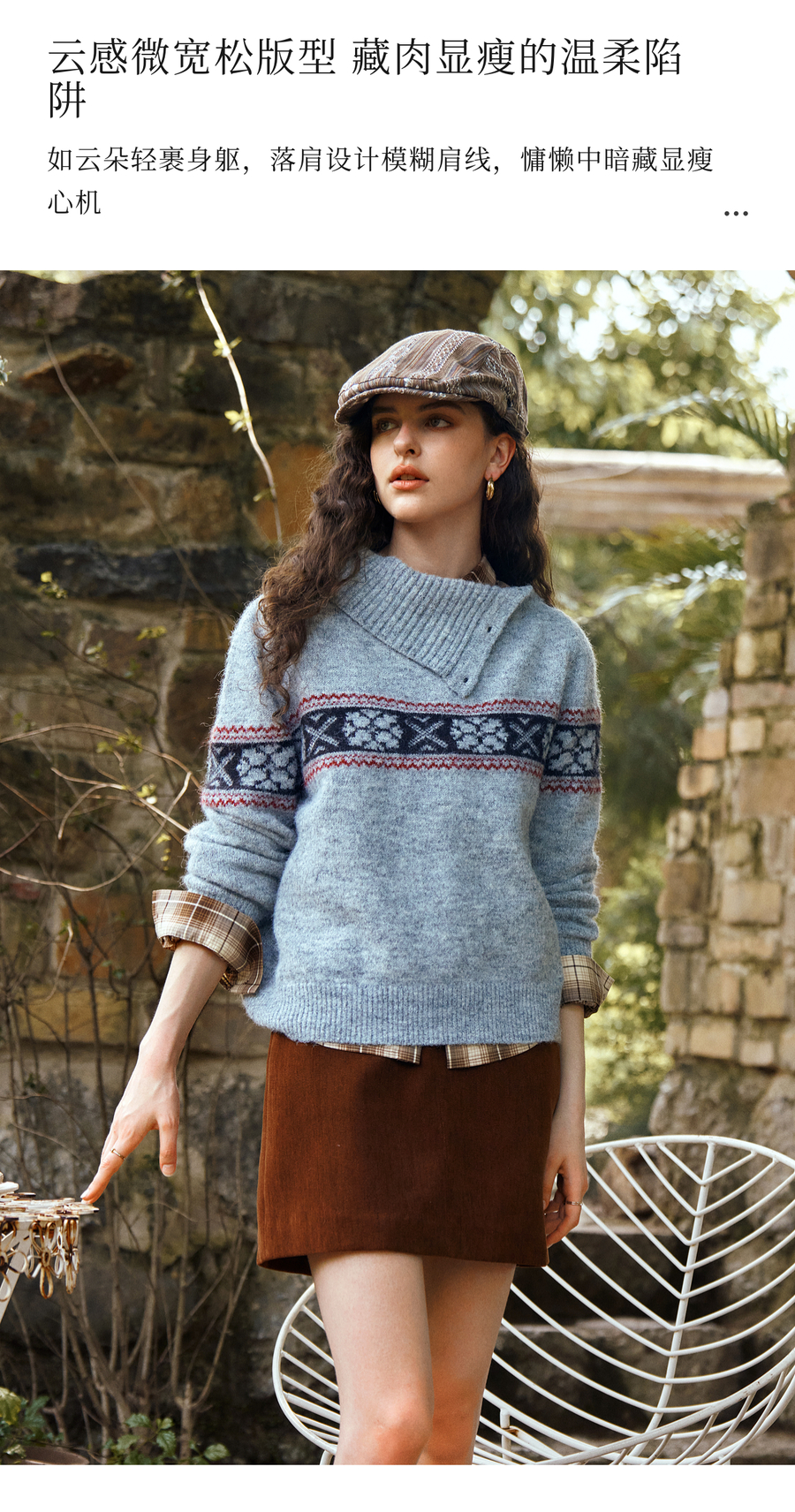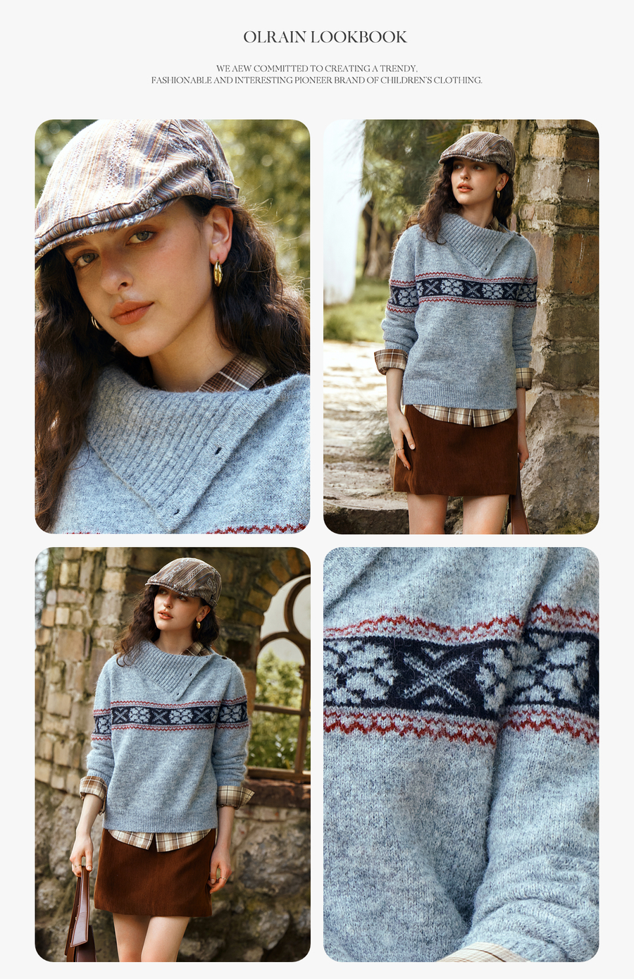 OLrain欧芮儿2025新款女秋季不规则翻领慵懒套头毛衣慵懒羊毛上衣