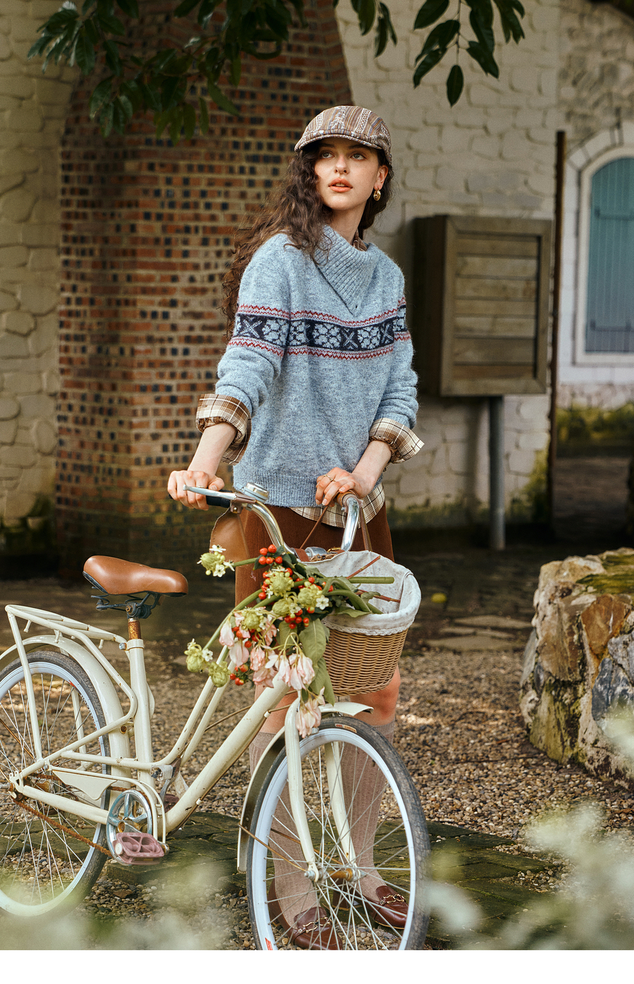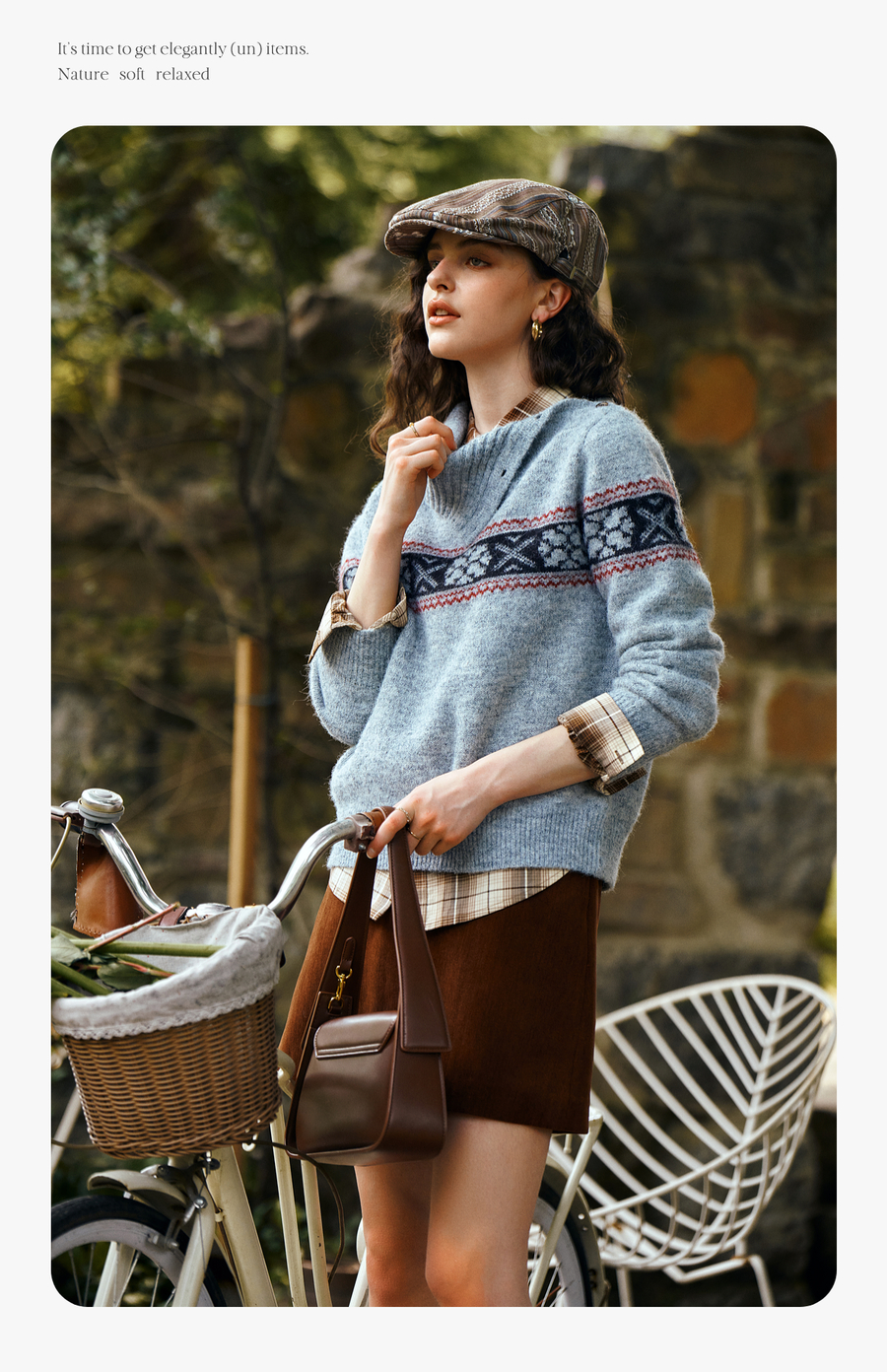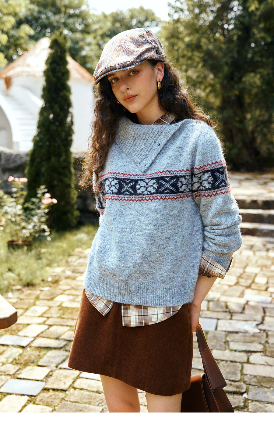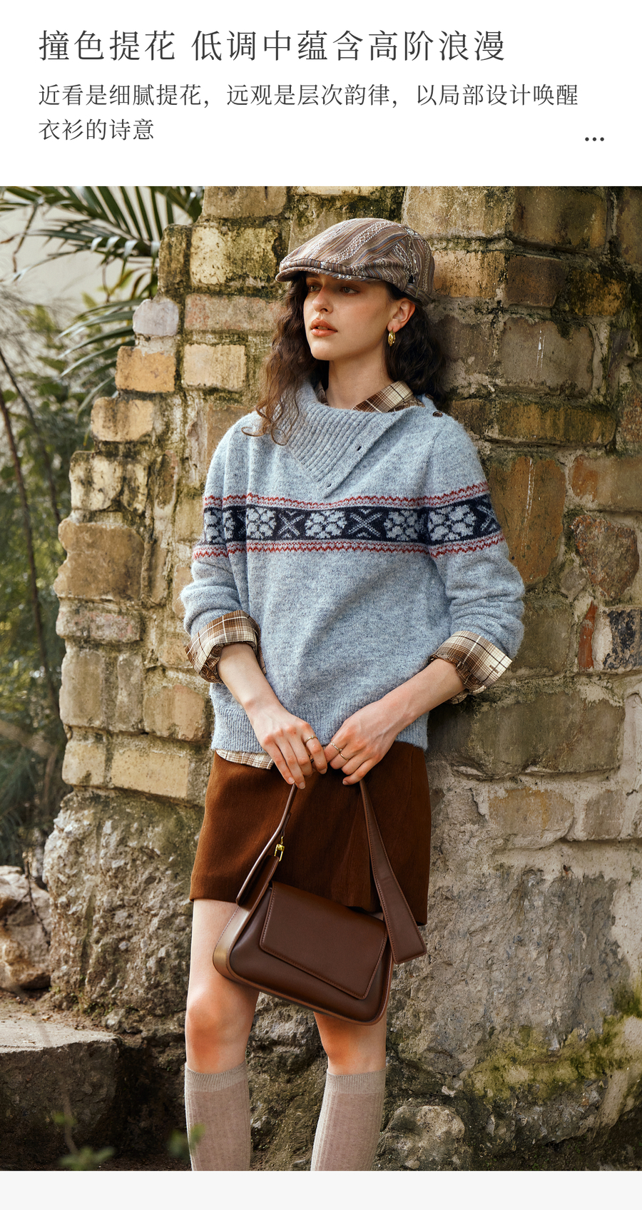 OLrain欧芮儿2025新款女秋季不规则翻领慵懒套头毛衣慵懒羊毛上衣