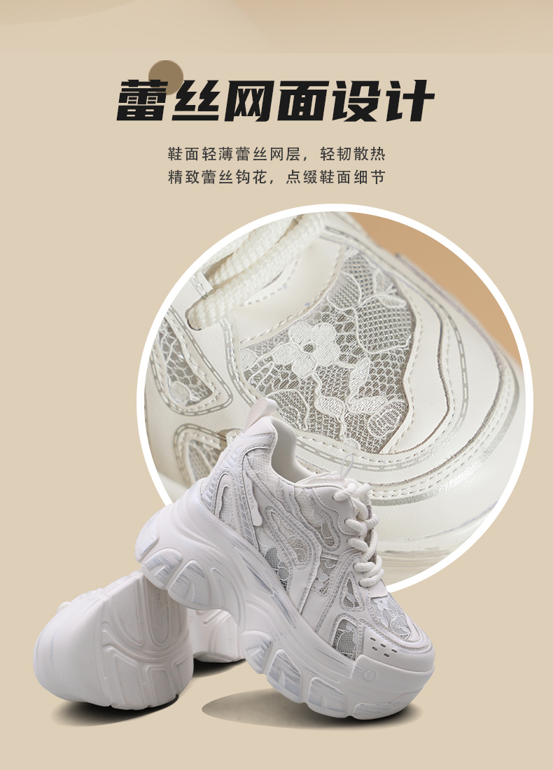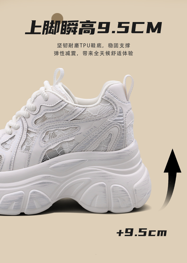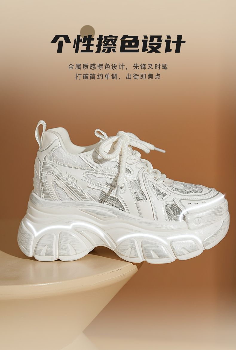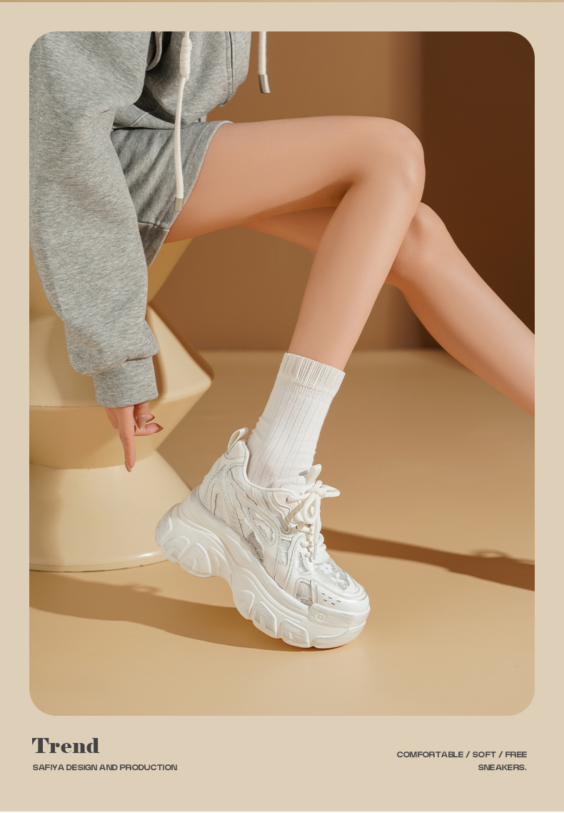 预售10天发|Safiya/索菲娅2025蕾丝透网增高厚底运动休闲老爹鞋 SFD1112238