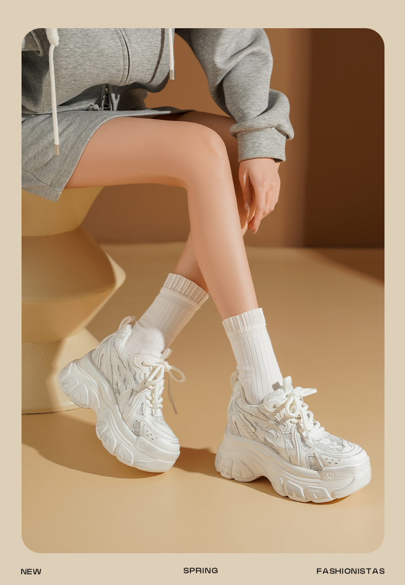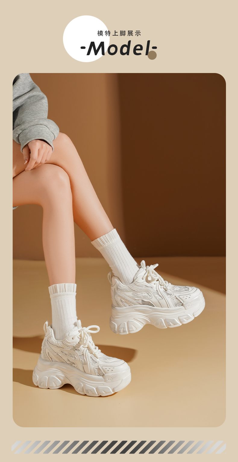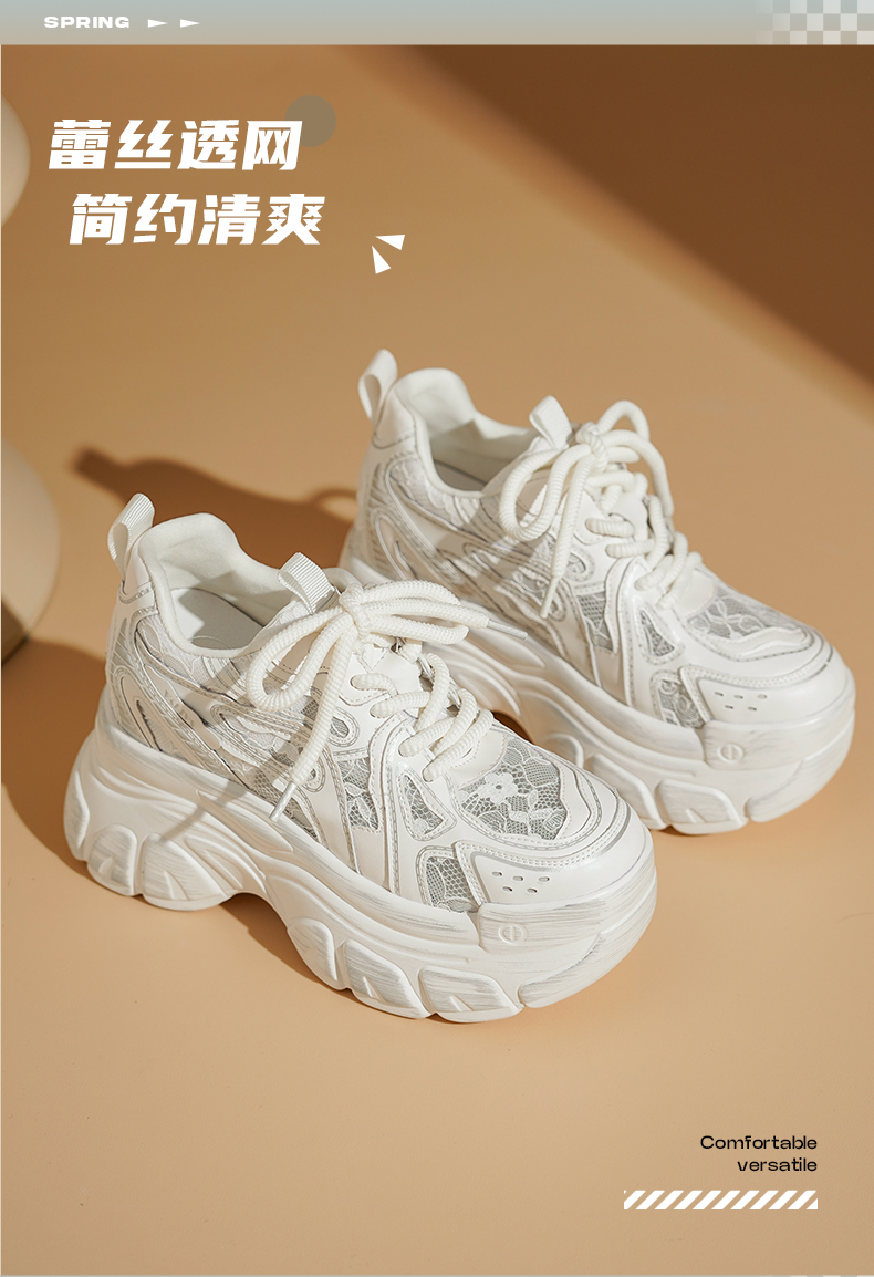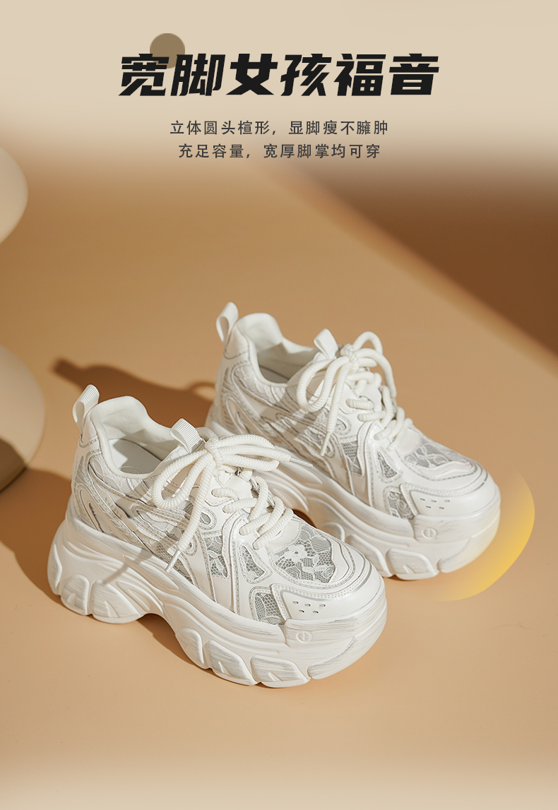 预售10天发|Safiya/索菲娅2025蕾丝透网增高厚底运动休闲老爹鞋 SFD1112238