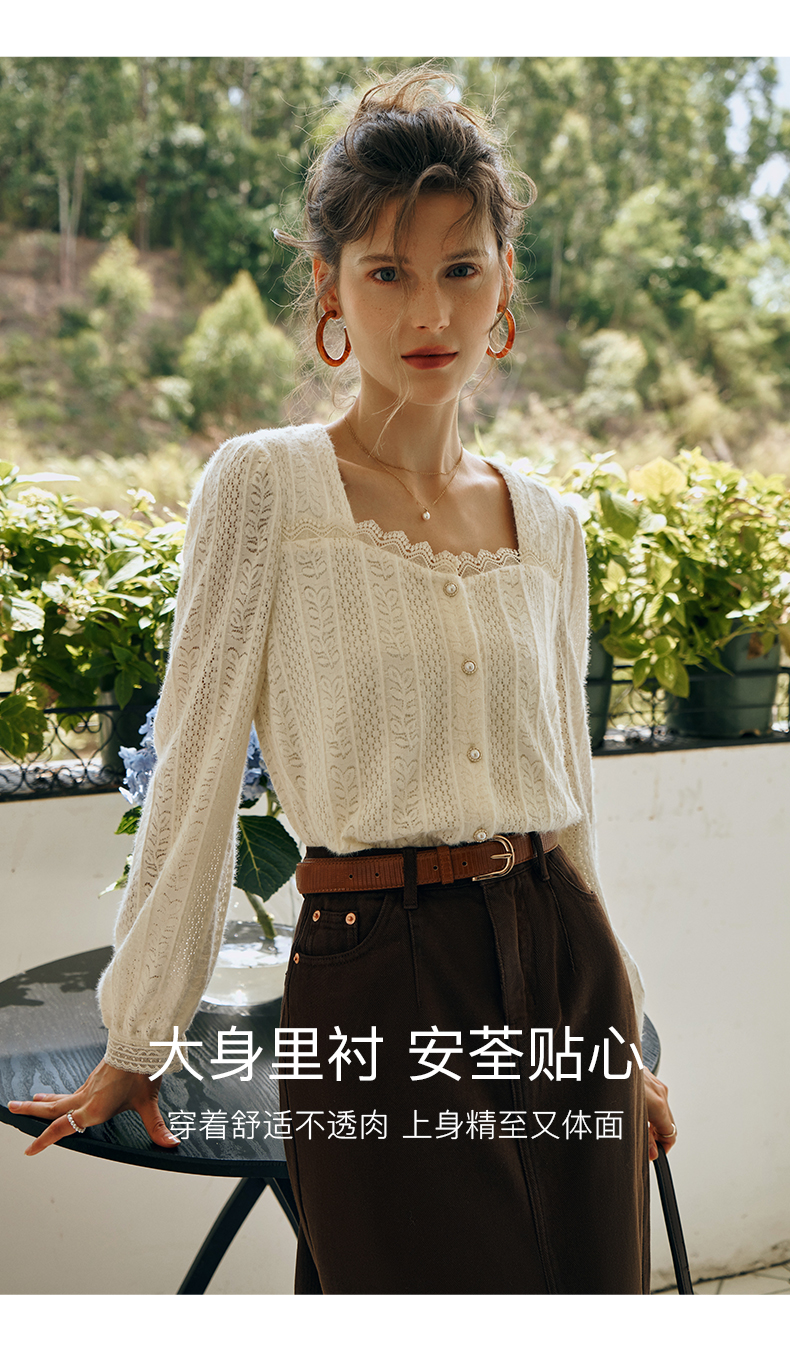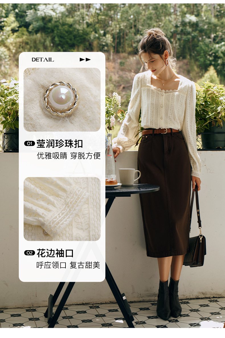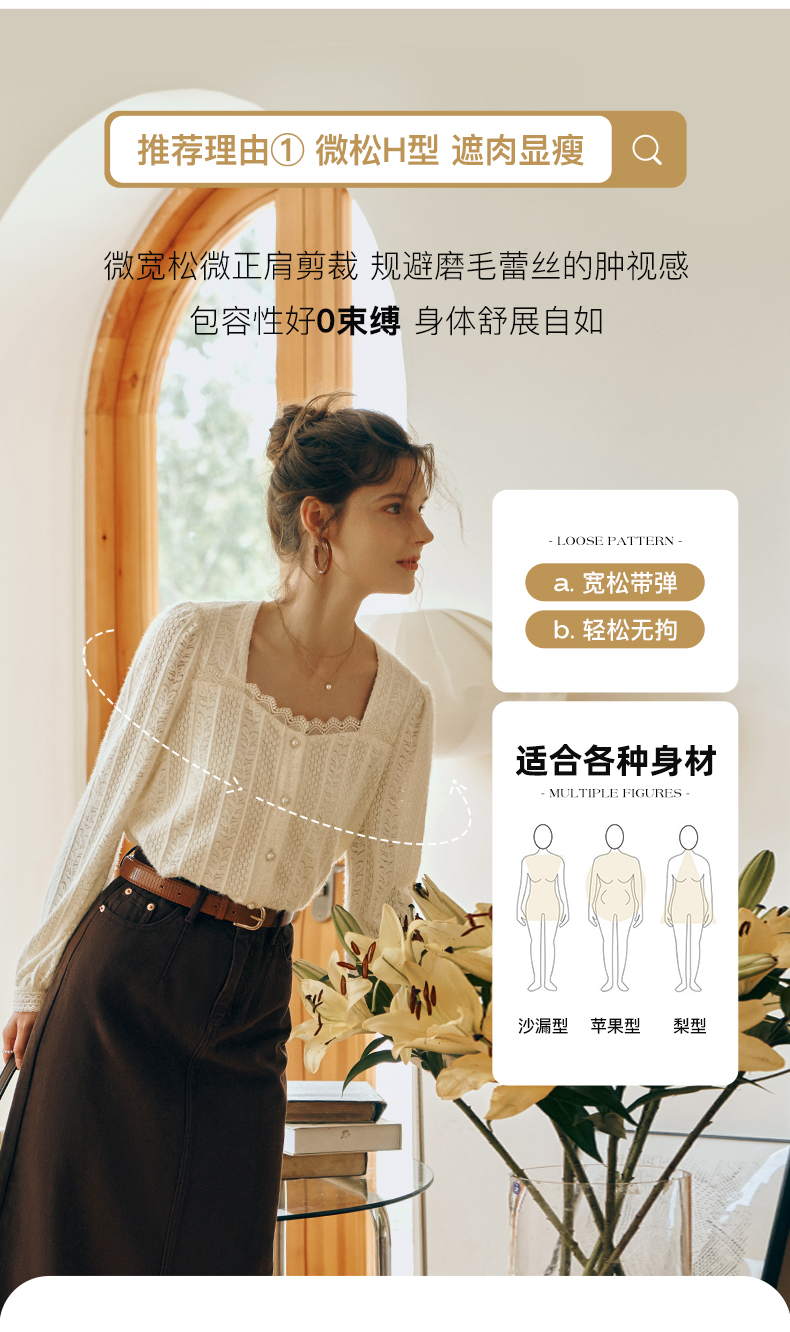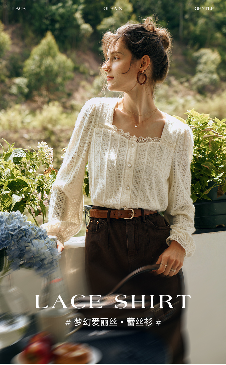 OLrain欧芮儿法式蕾丝雪纺衫女初秋2023年新款气质设计感小众衬衣