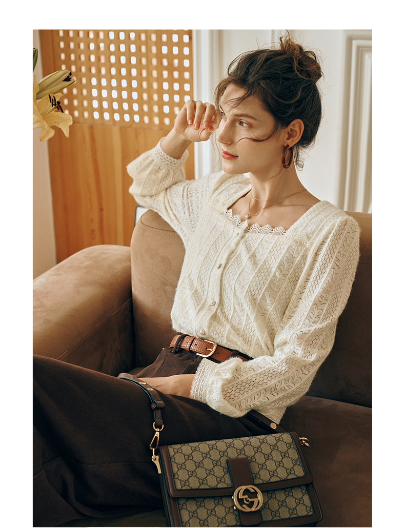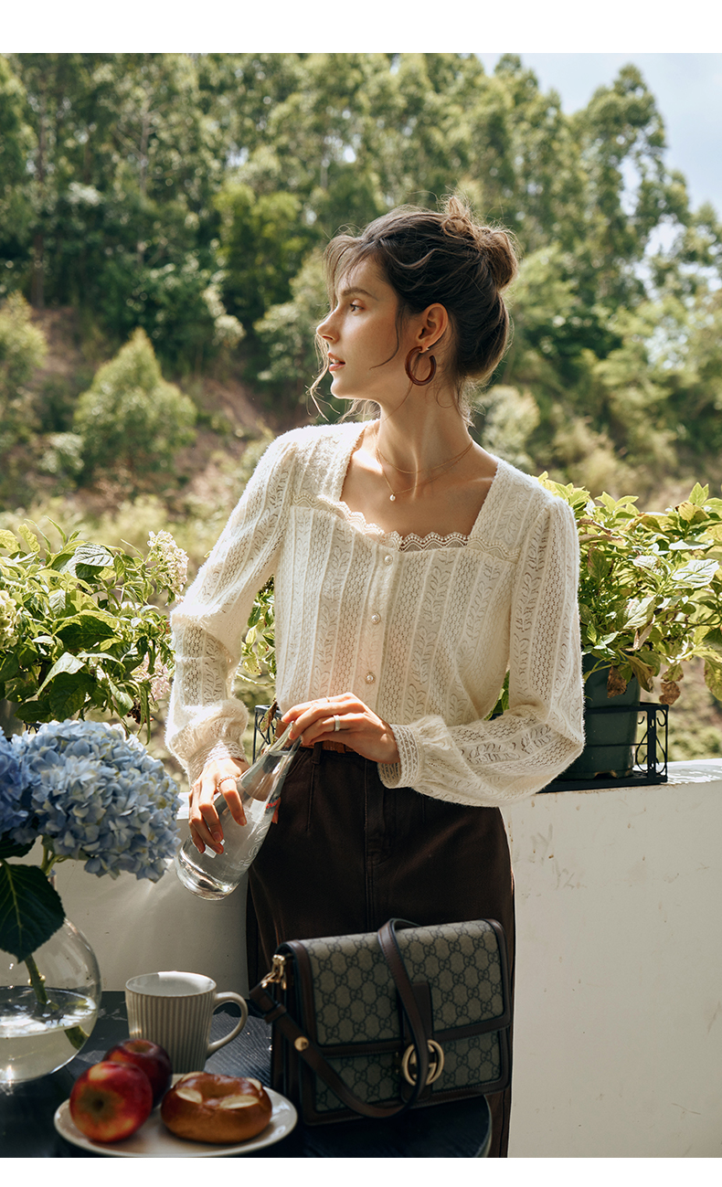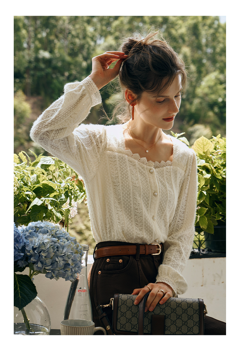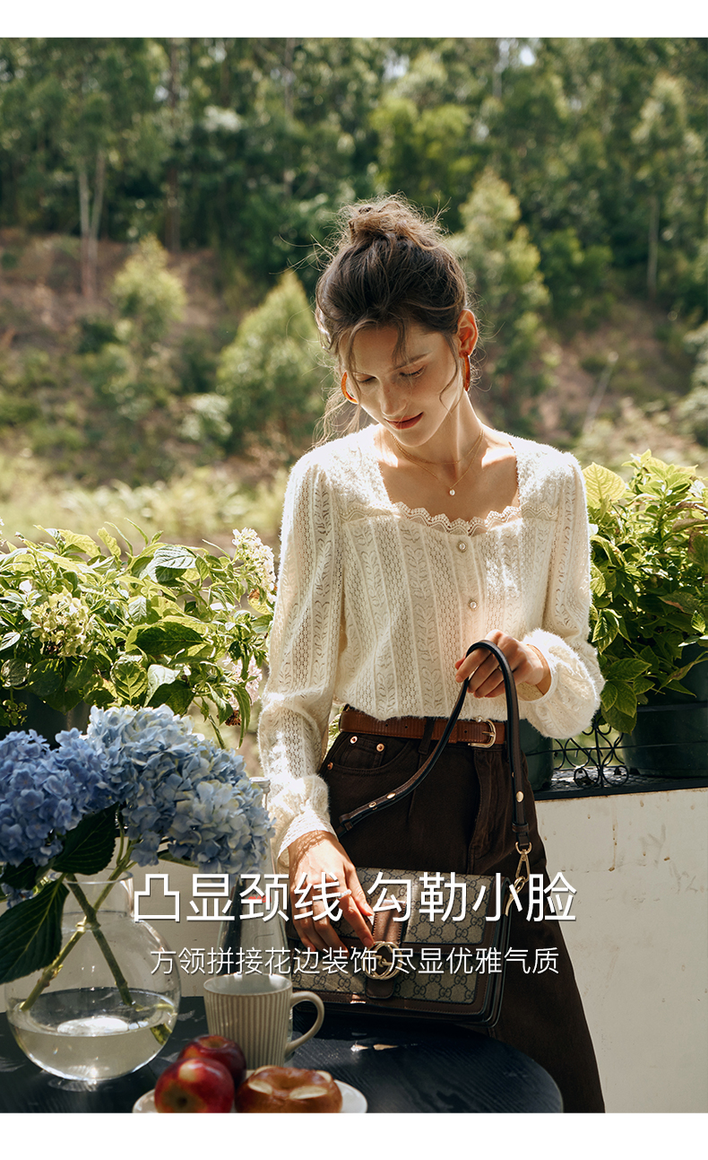 OLrain欧芮儿法式蕾丝雪纺衫女初秋2023年新款气质设计感小众衬衣