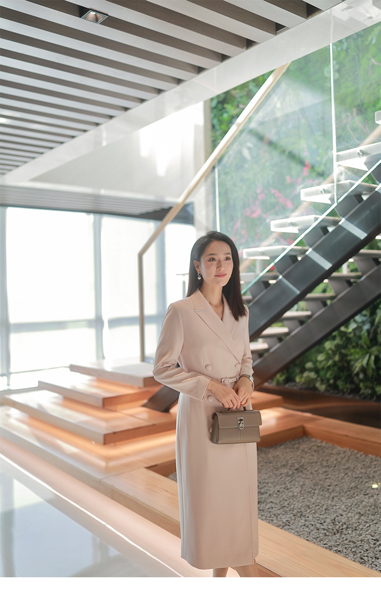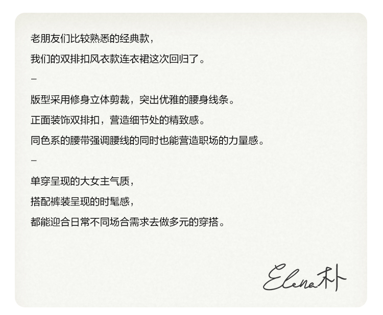 “赫本衣橱”质感通勤 腰带设计 双排扣风衣款 连衣裙
