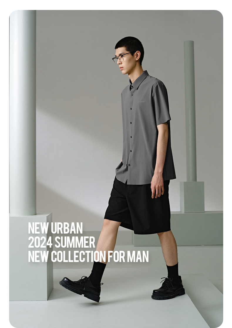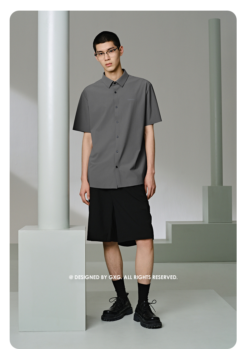 GXG男装 深卡其简约休闲短袖衬衫24年夏季热卖G24X232029