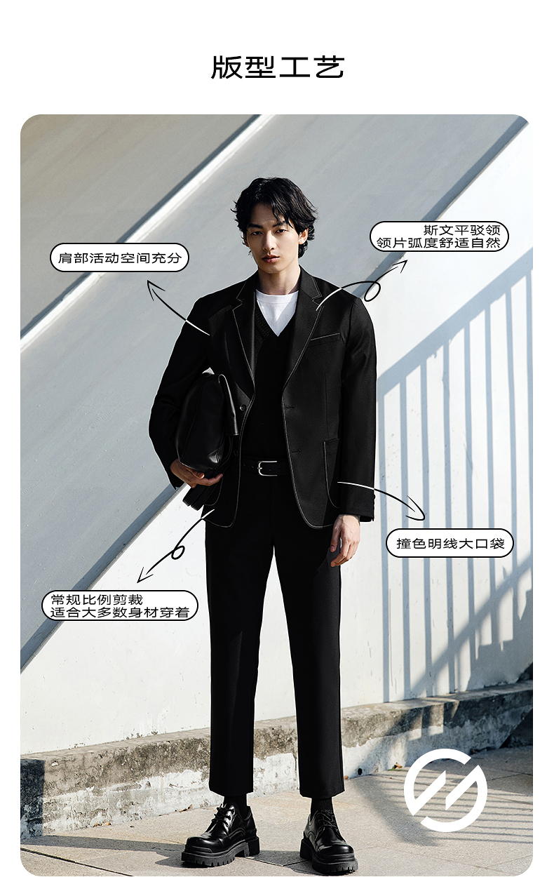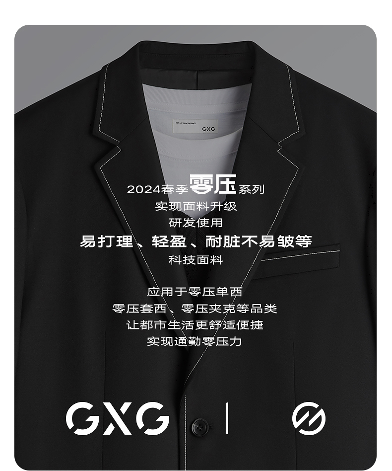 GXG男装 明线设计简约商务休闲西装外套男不易皱西服 24年春热卖西服