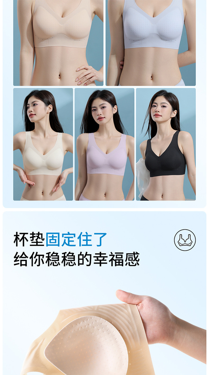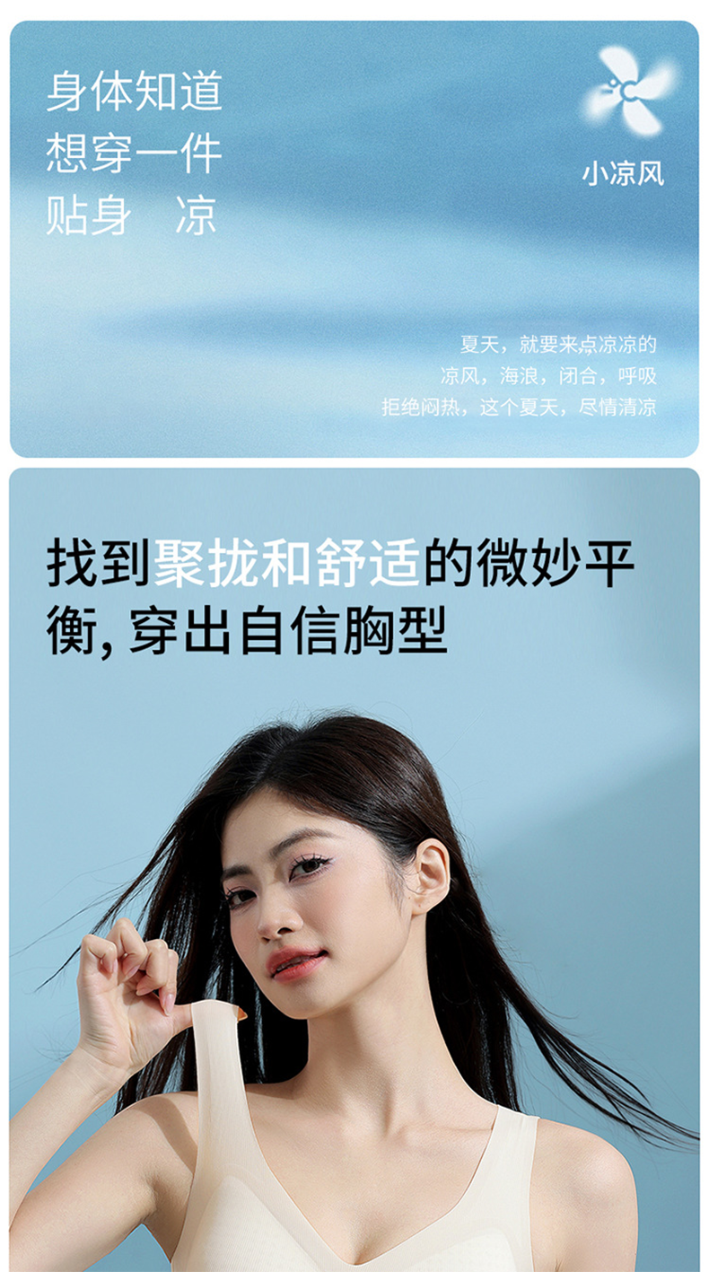 【39元1件】固定杯夏季薄款内衣女背心式文胸无痕无钢圈夏天冰丝超薄女士胸罩-1226
