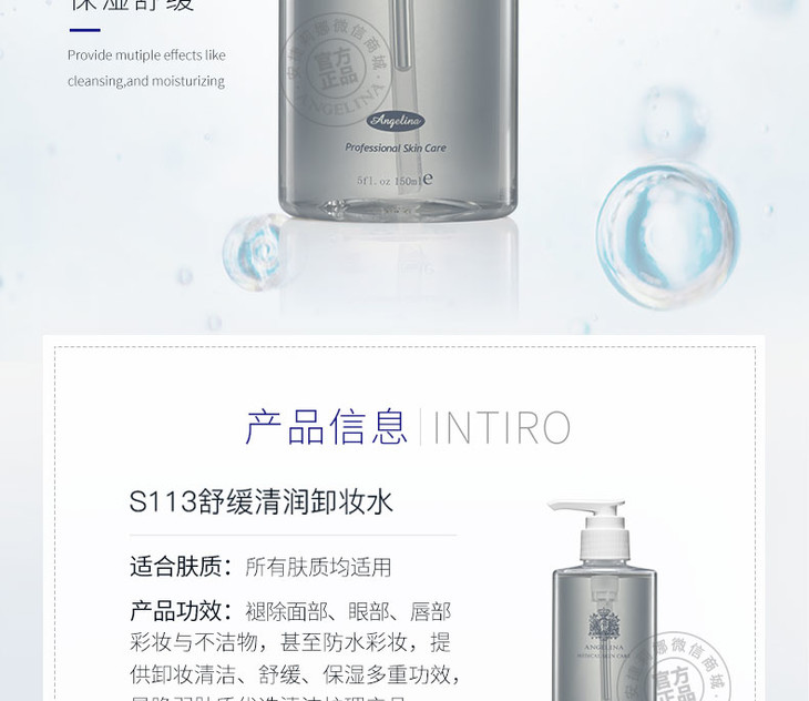安捷莉娜V113舒缓清润卸妆水500ml+S103卸妆油150ml
