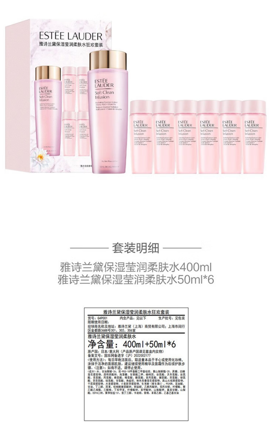 【全球购】【364元会员福利】雅诗兰黛保湿莹润柔肤水狂欢套装(400ml+50ml*6)