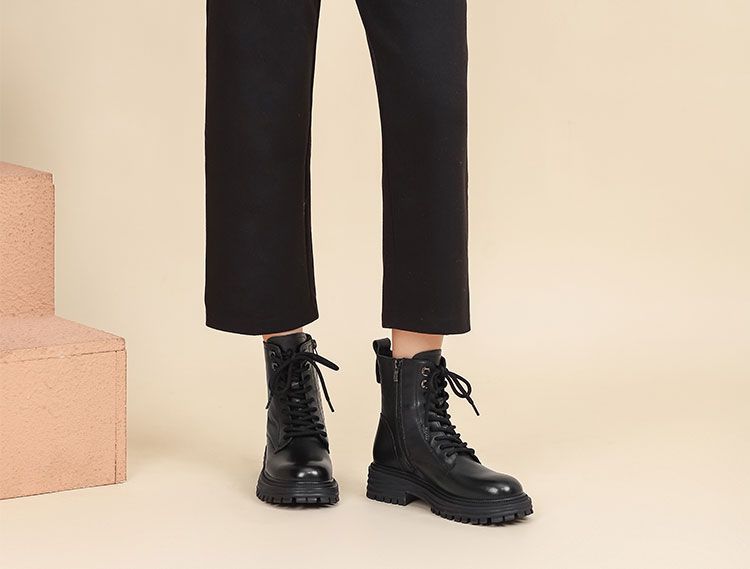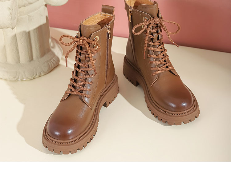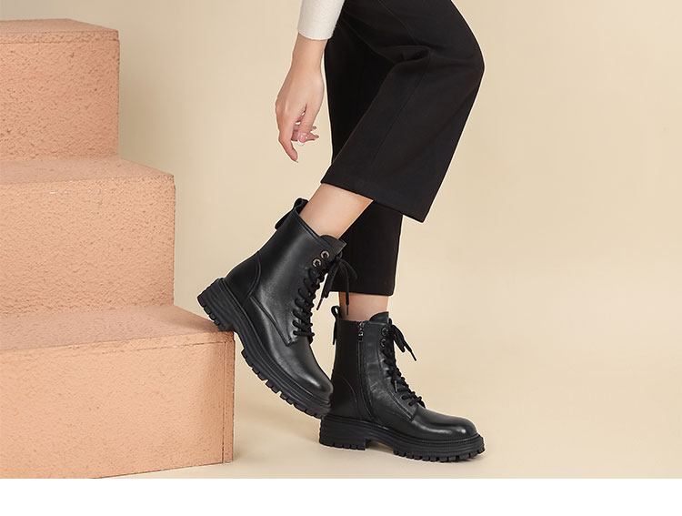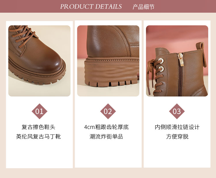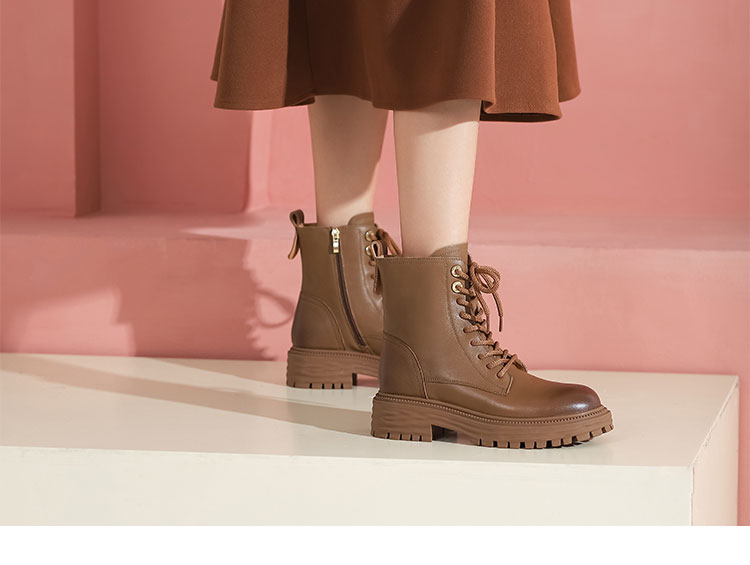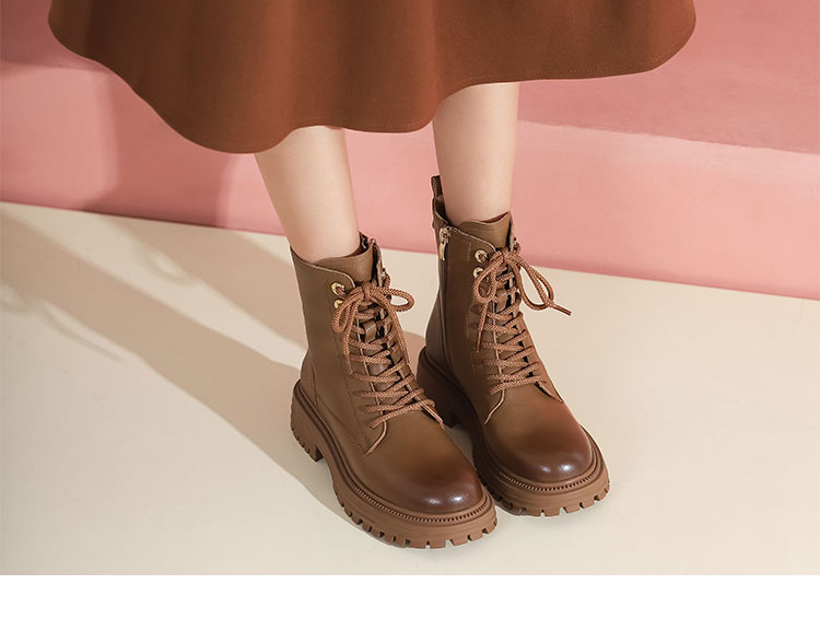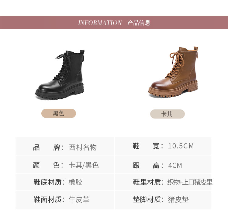 西村名物22年冬新款【帅气】马丁靴交叉系带圆头短靴45311