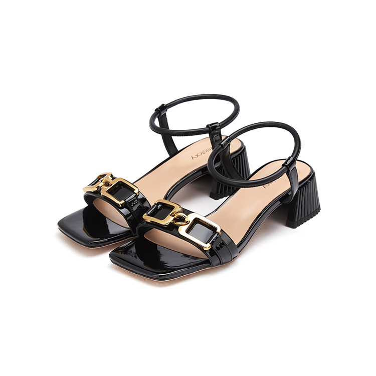 westory女鞋2021夏季新款漆皮水钻粗跟一字带凉鞋外穿S21BG60921