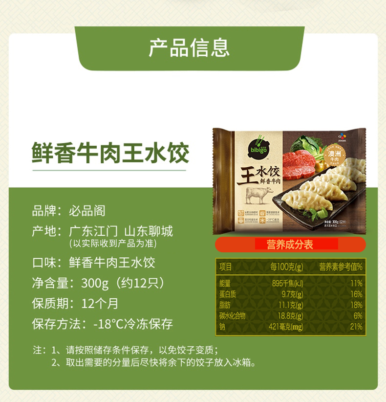 必品阁 王水饺鲜香牛肉王水饺300g 皮薄馅香 甄选原料 72小时发货