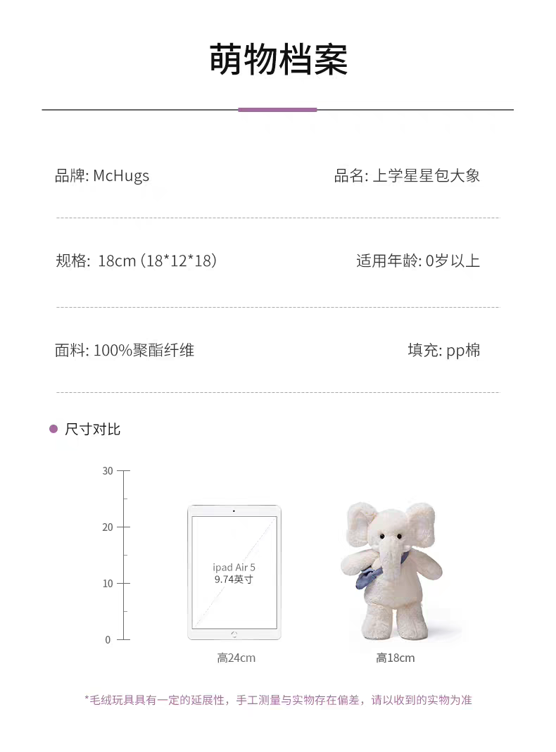 McHugs上学星星包大象18cm