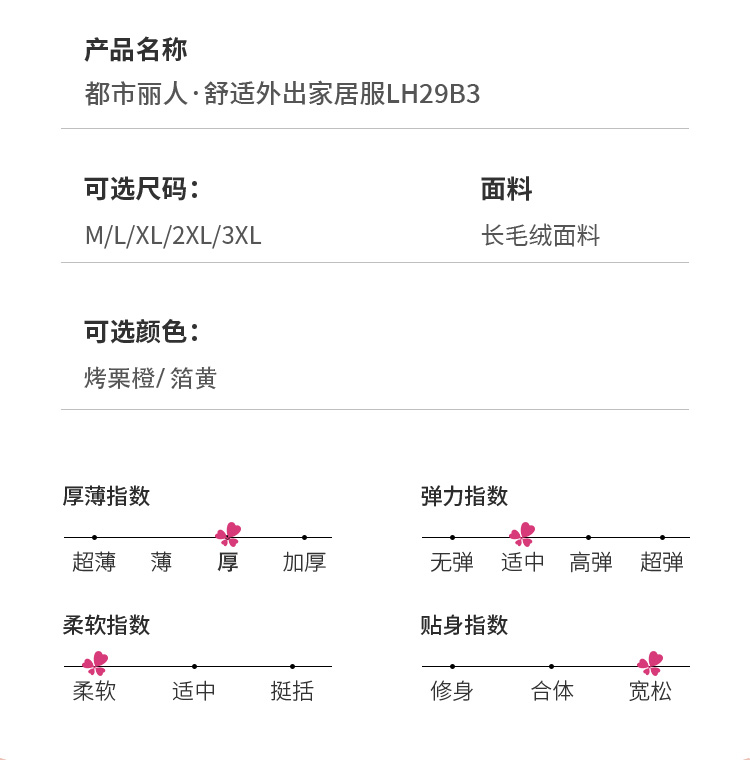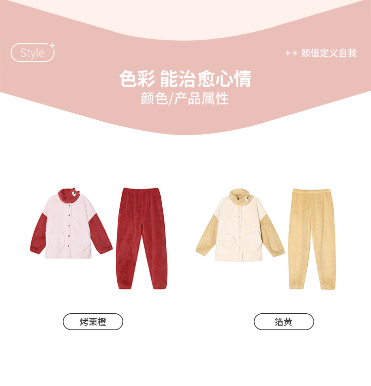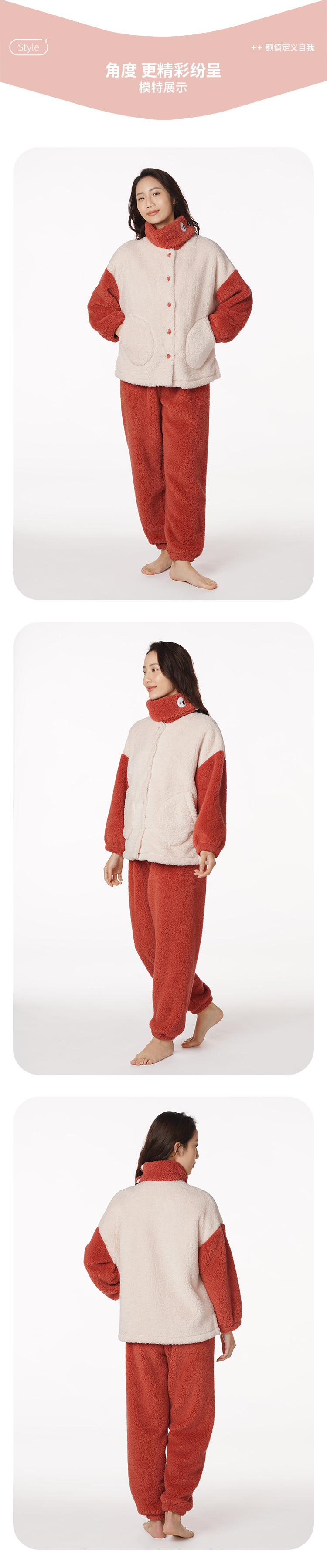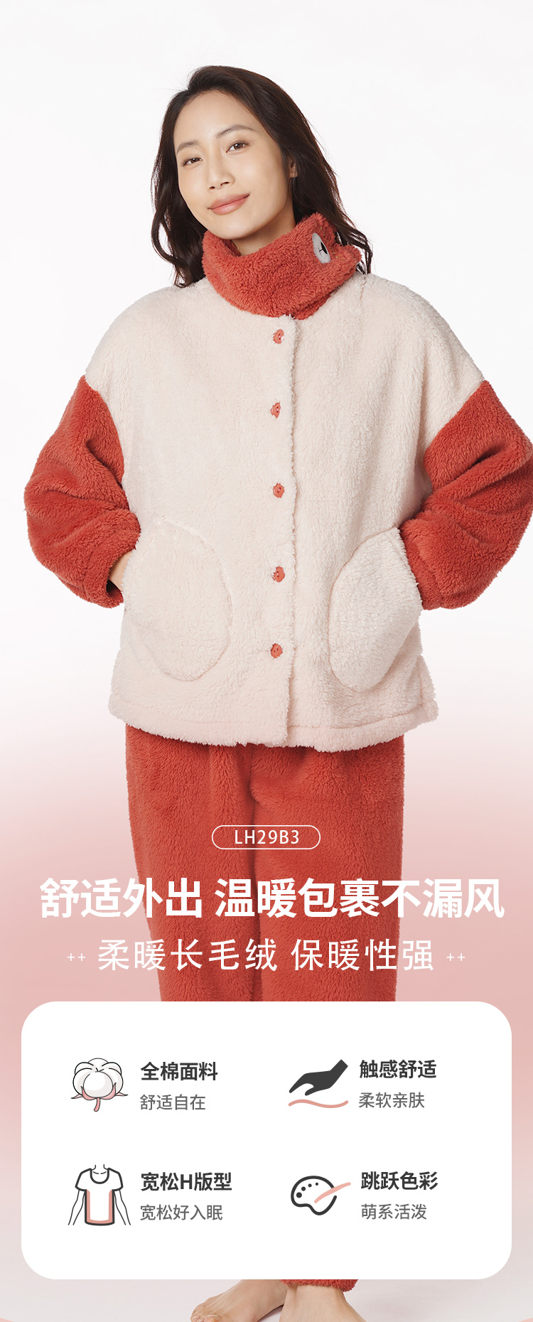 都市丽人舒适外出女士长毛绒套装长毛绒厚家居服长袖睡衣LH29B3