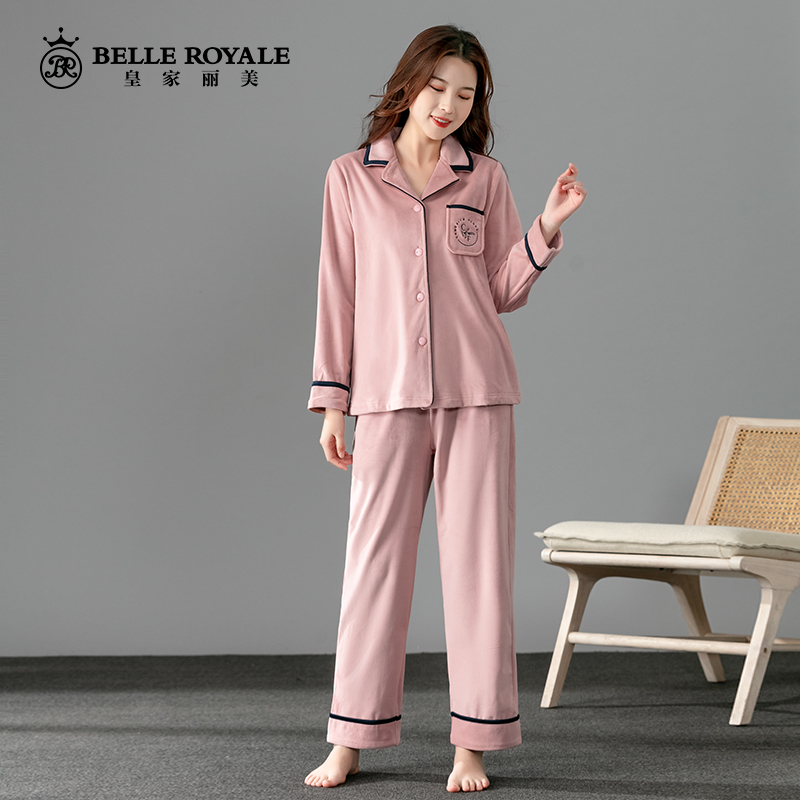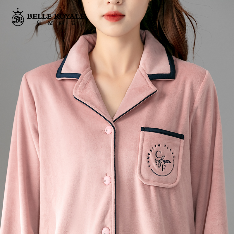睡衣女秋冬季保暖海岛绒女士睡衣套装简约薄款海岛绒可外穿家居服JJT9638
