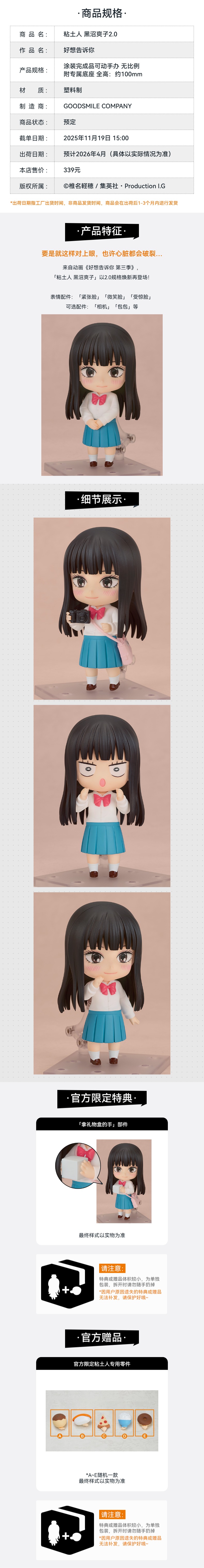 【GSC预售定金】粘土人 黑沼爽子2.0 好想告诉你 附官方限定特典
