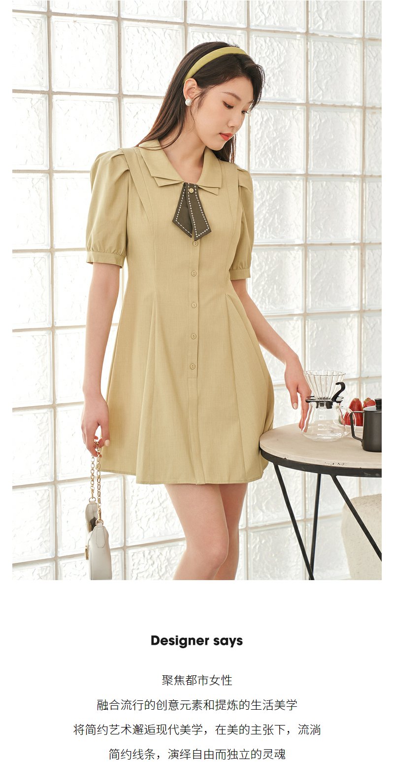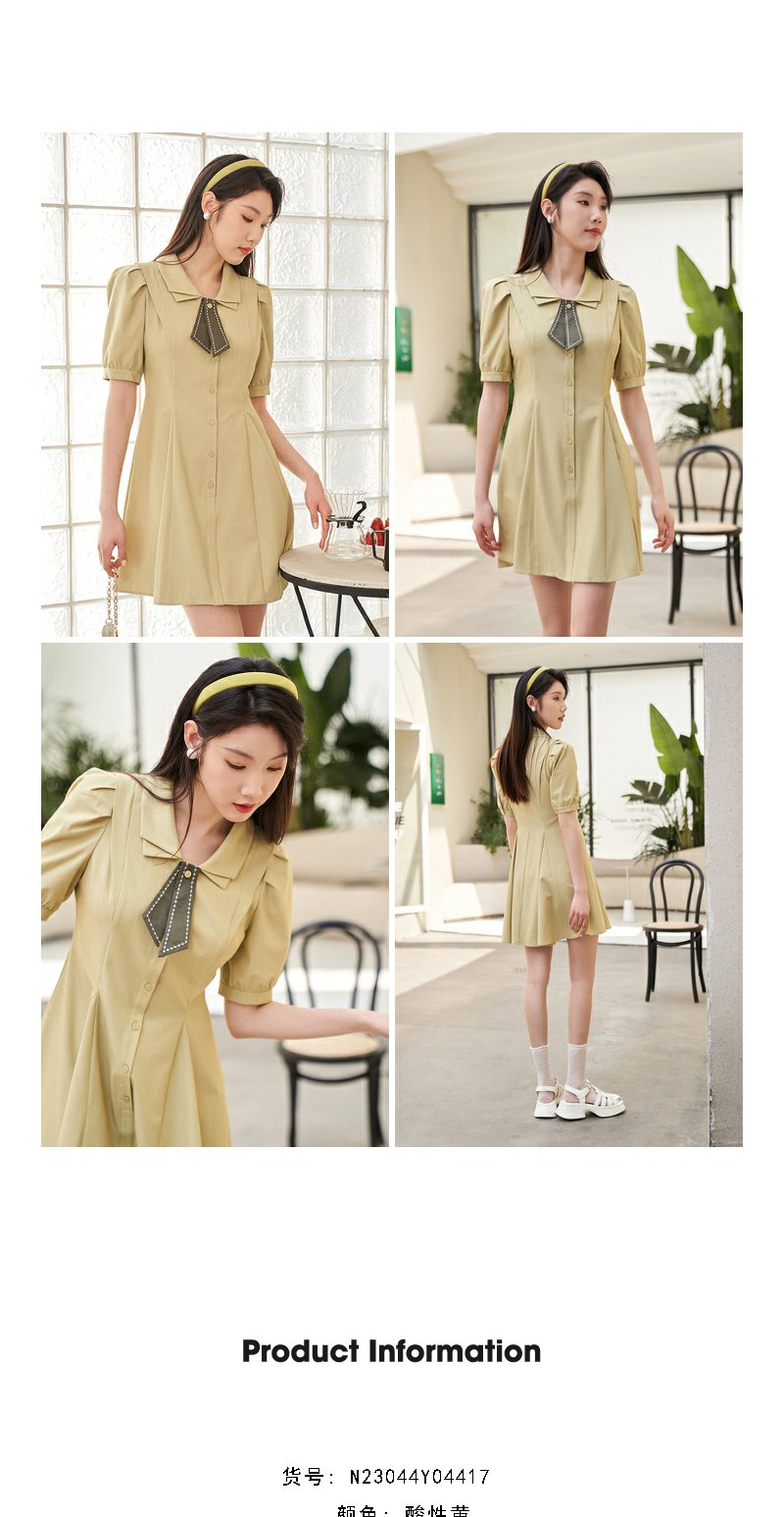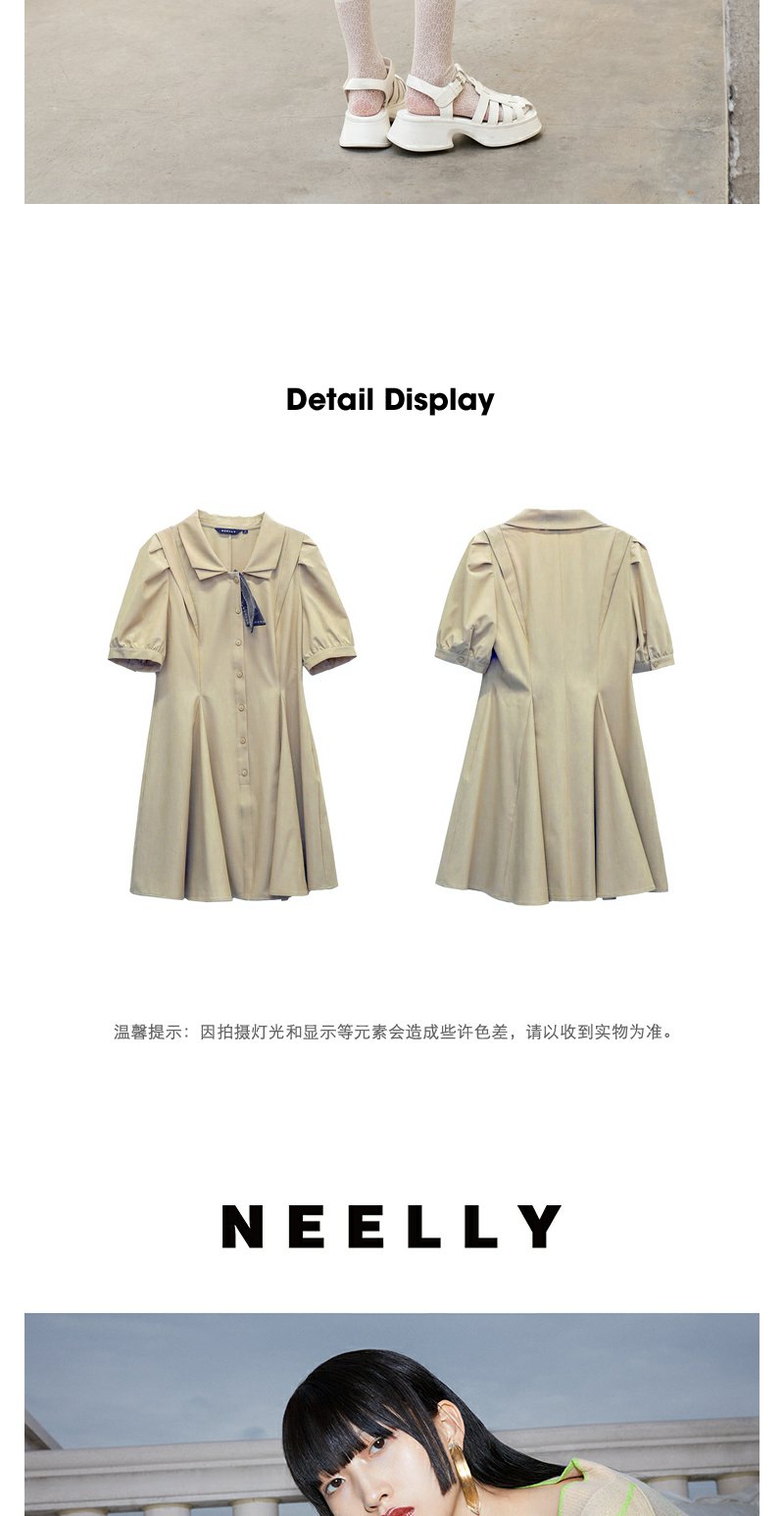 NEELLY纳俪商场同款双层领连衣裙女夏季新款泡泡袖高腰A字裙通勤N23044Y04417