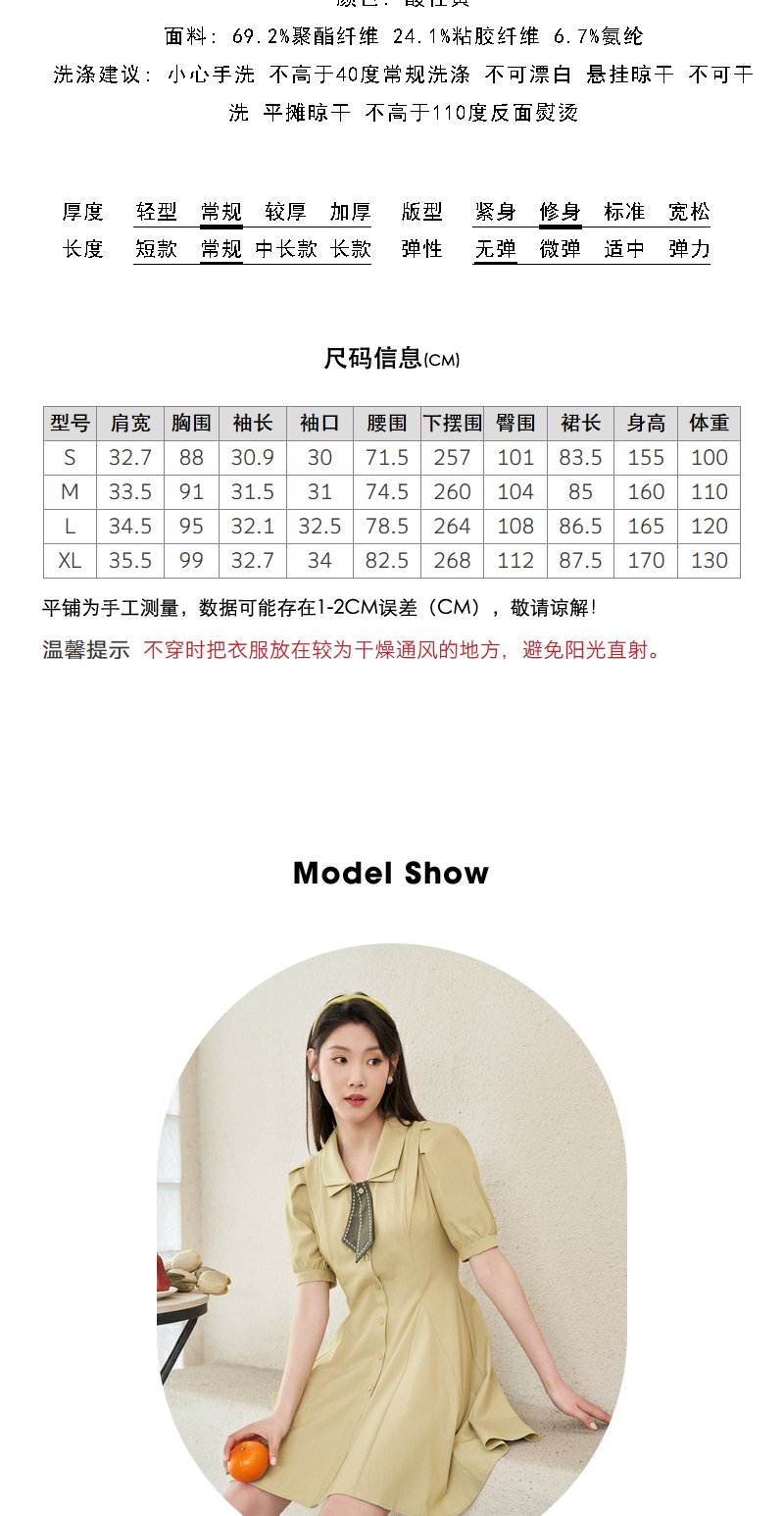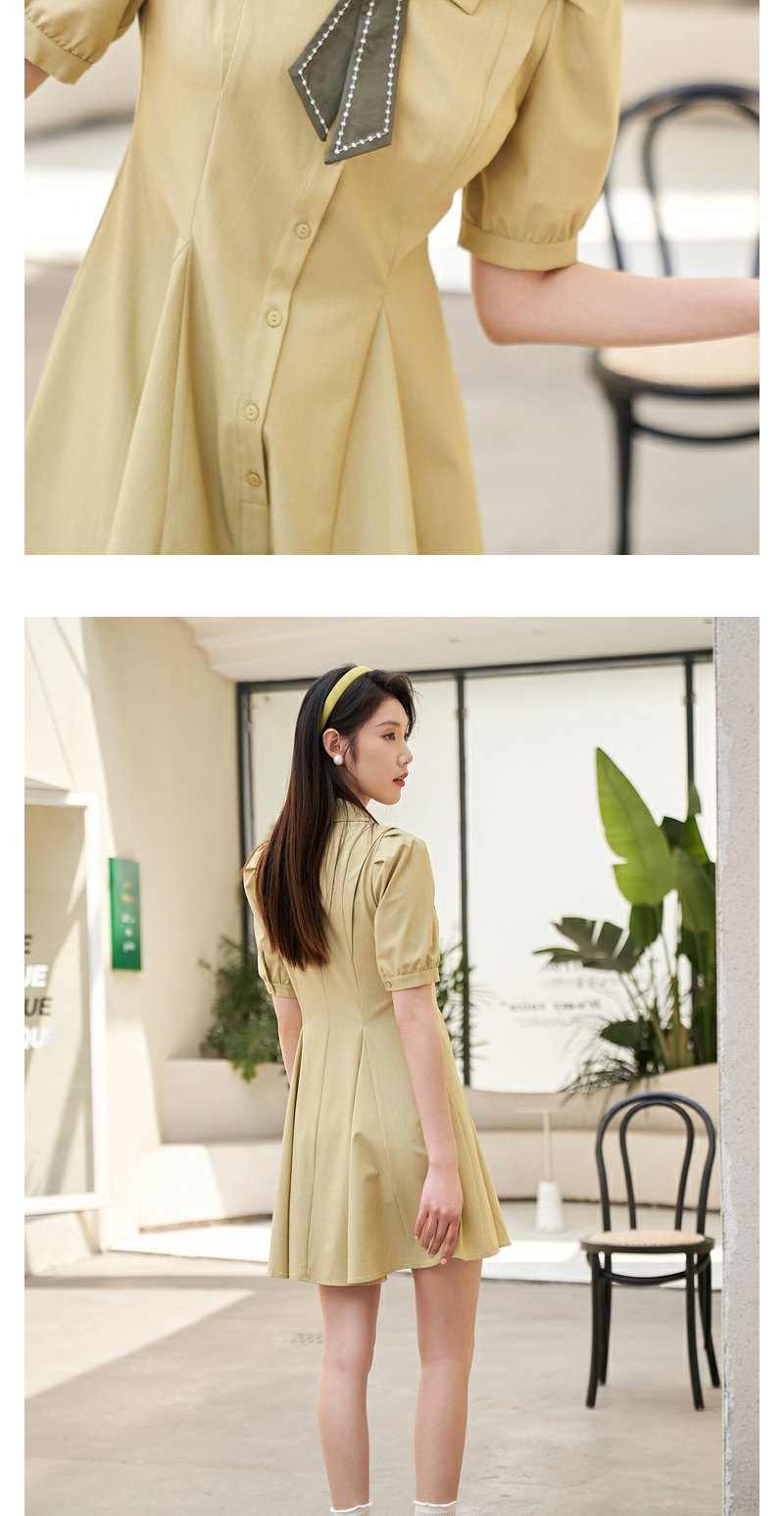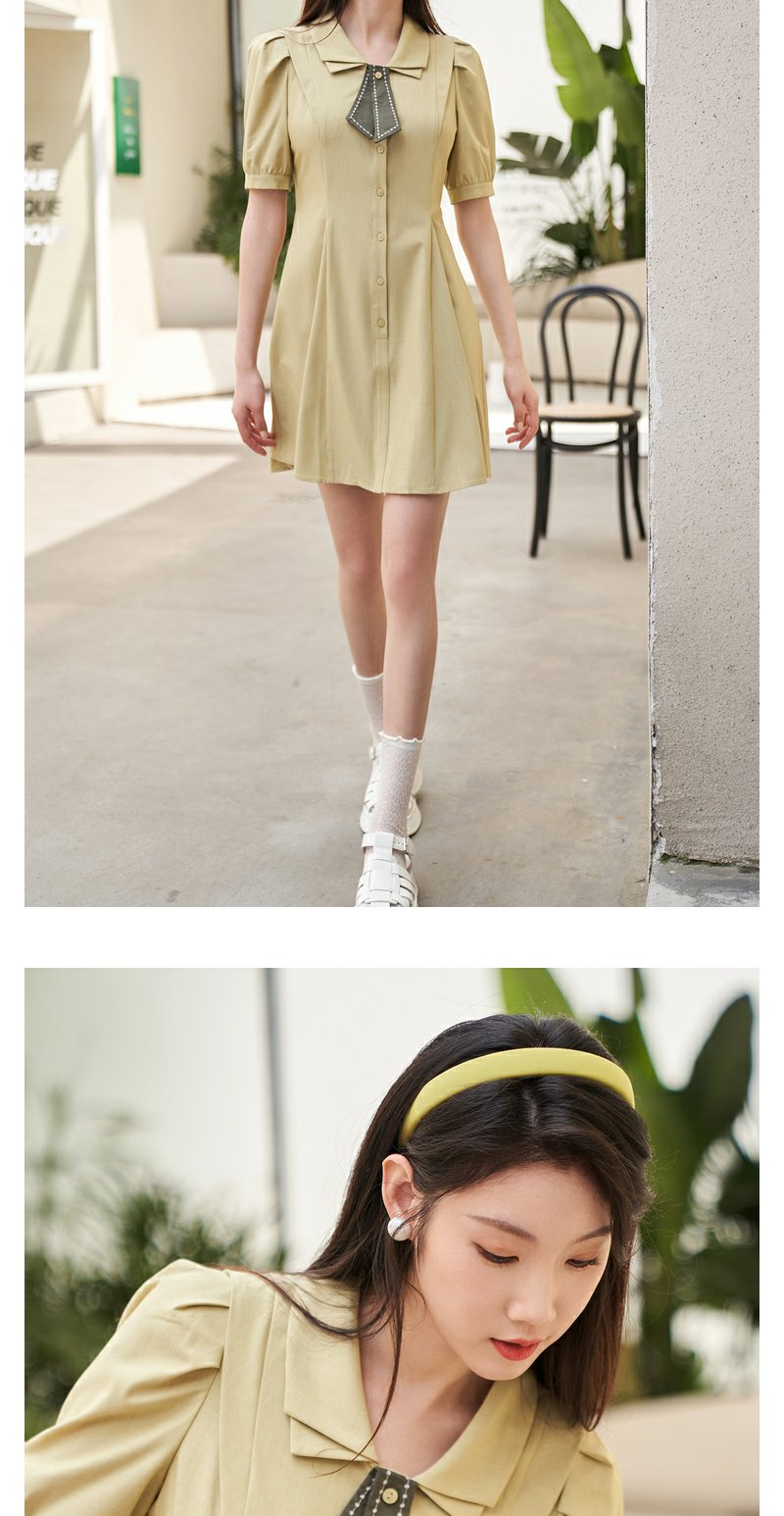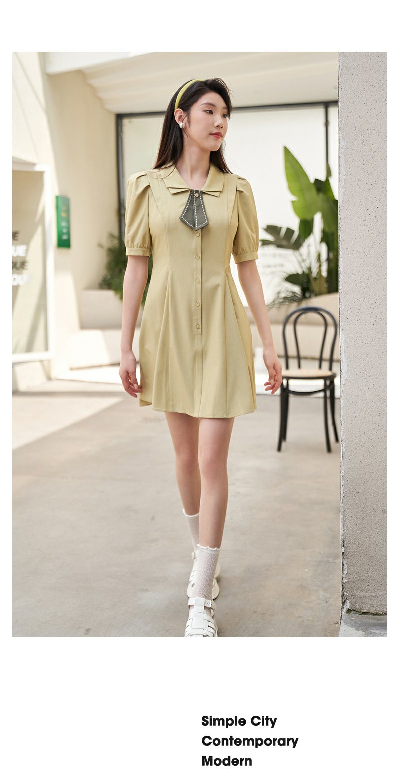 NEELLY纳俪商场同款双层领连衣裙女夏季新款泡泡袖高腰A字裙通勤N23044Y04417
