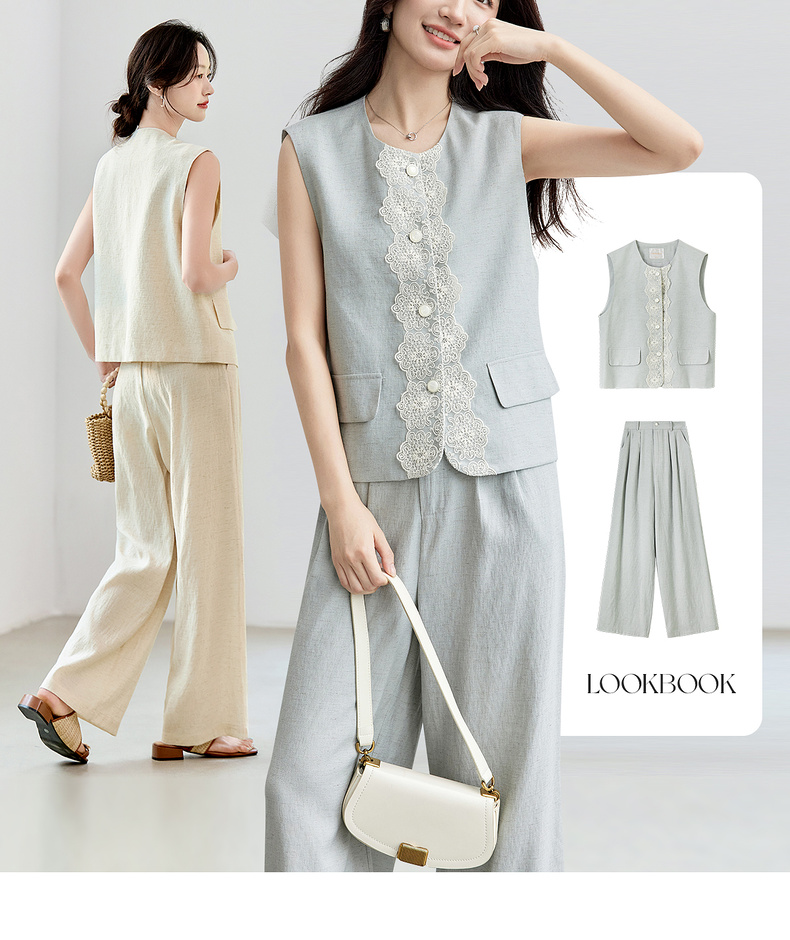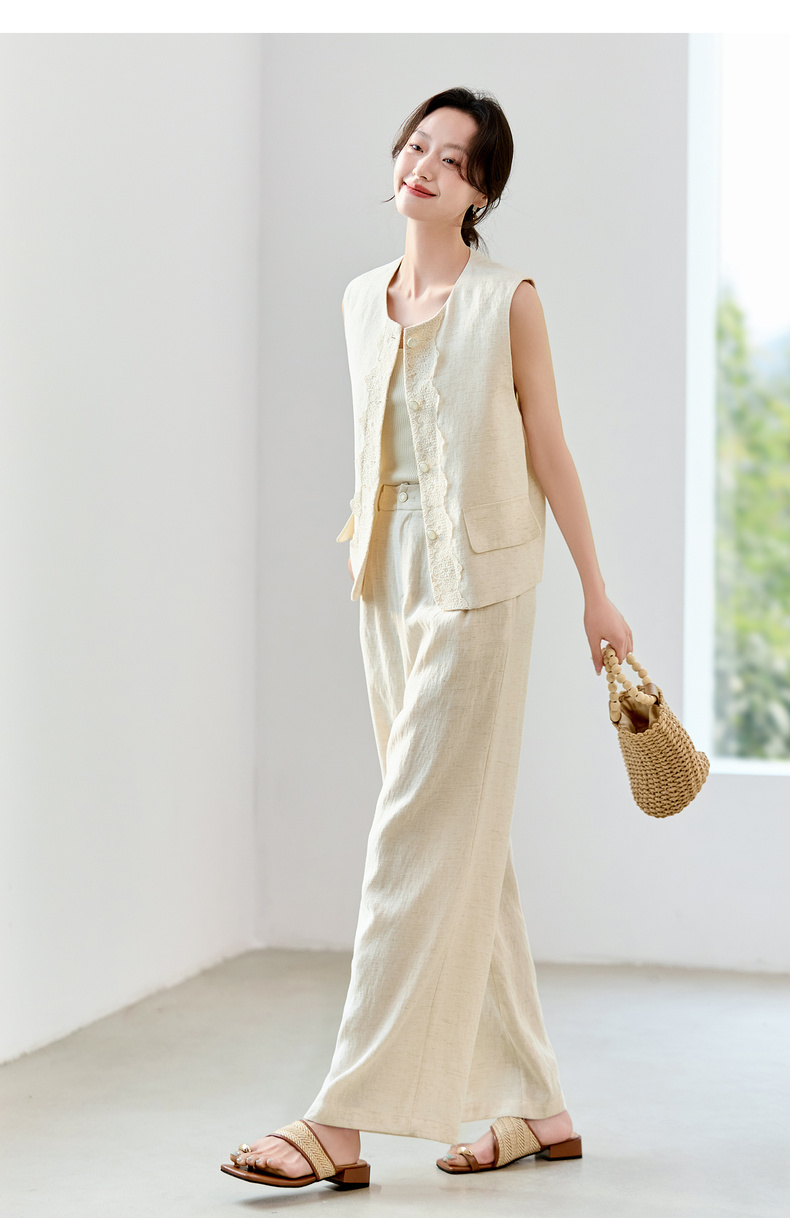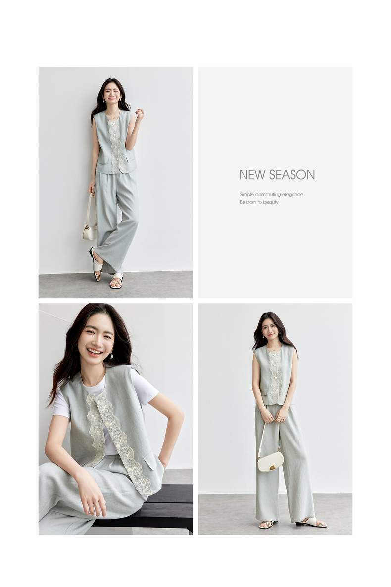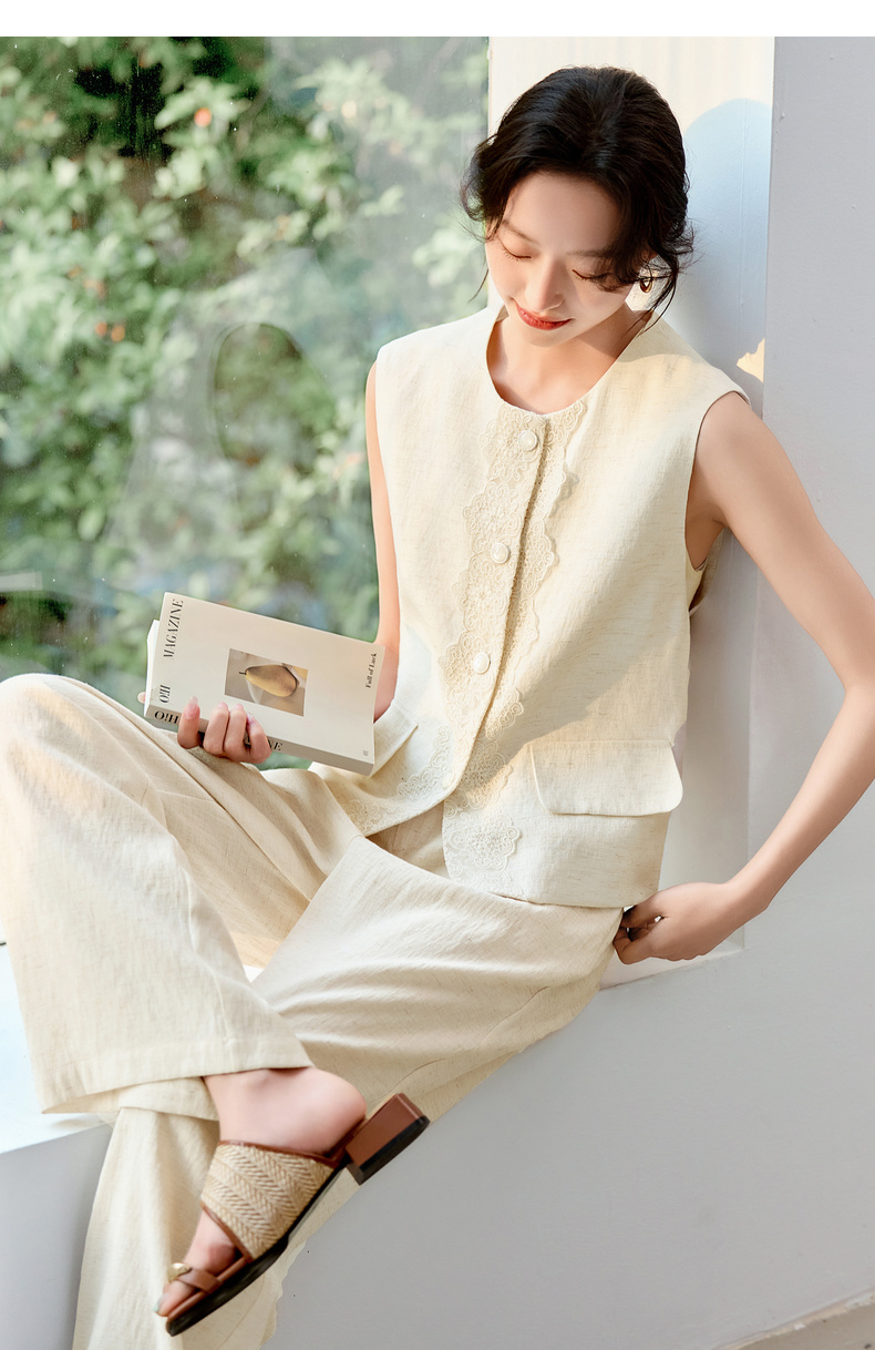 【内购】【免搭配套装】气质通勤圆领无袖外套&松紧高腰立体双褶阔腿长裤-T53ZA3917X