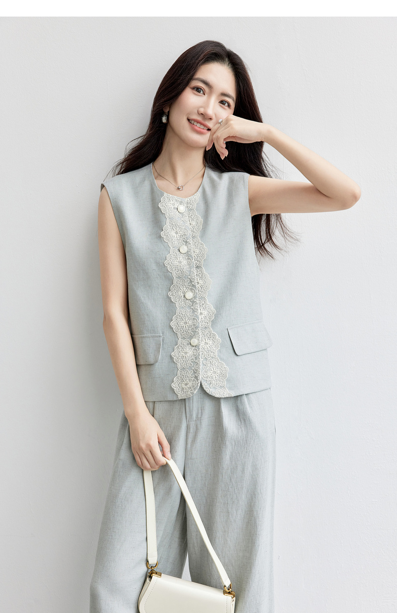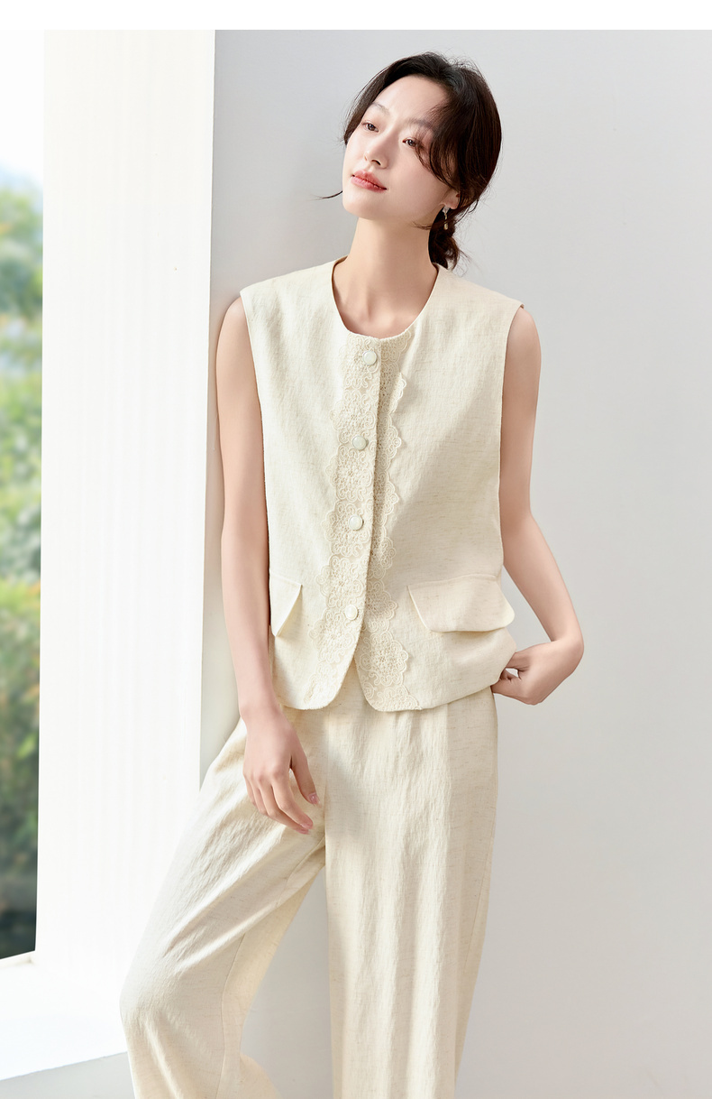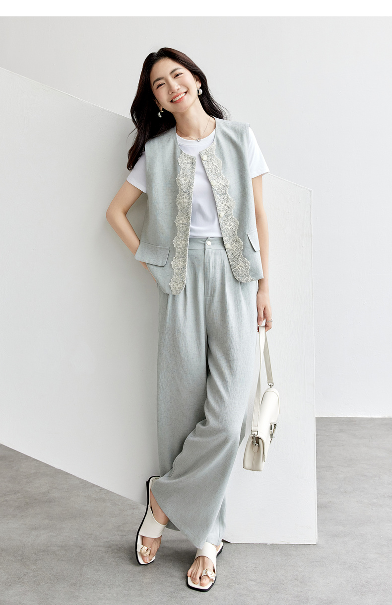 【内购】【免搭配套装】气质通勤圆领无袖外套&松紧高腰立体双褶阔腿长裤-T53ZA3917X