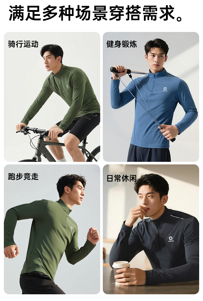 积能秋冬新款男士半拉链立领卫衣秋冬户外跑步运动速干衣长袖