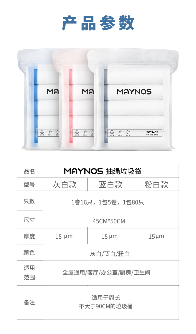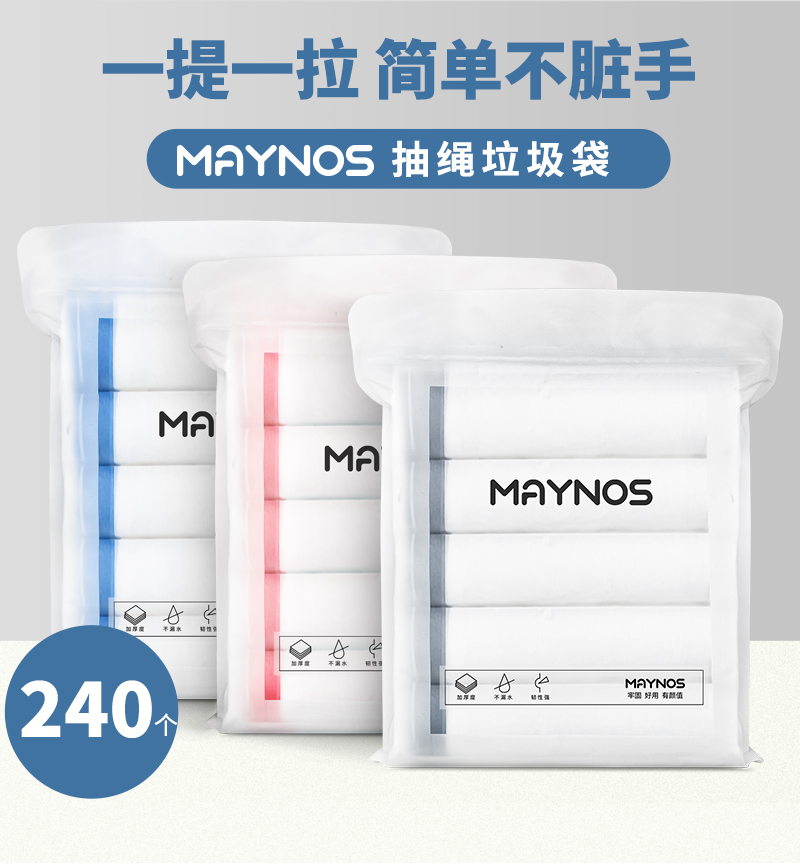 【爆款超低价,买到赚到】MAYNOS抽绳垃圾袋一提一拉不脏手加厚升级高颜值品质