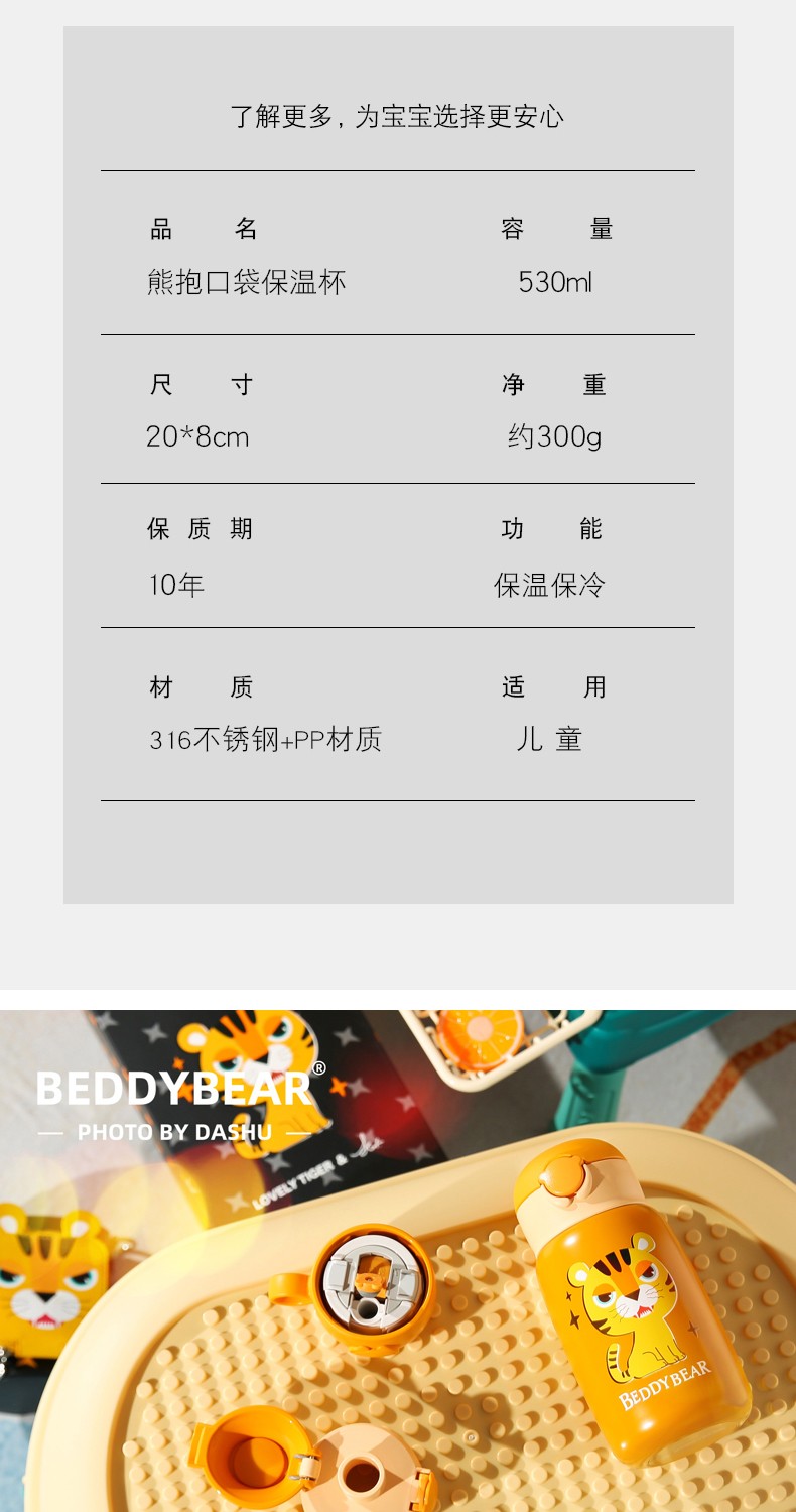 杯具熊(beddybear)熊抱儿童保温杯系列580mlBJX-17