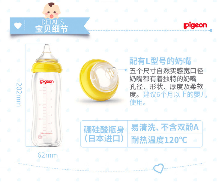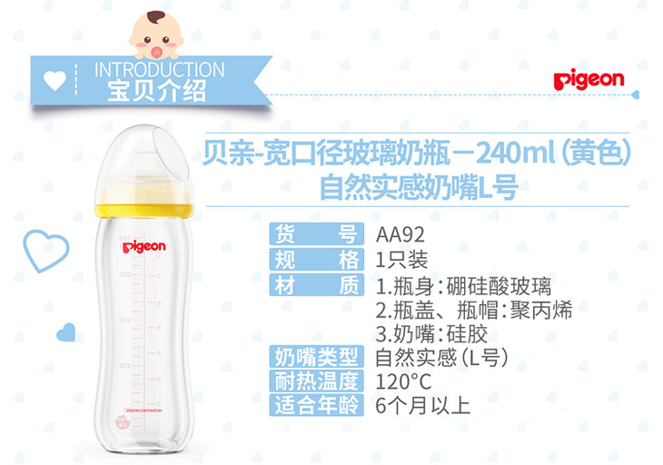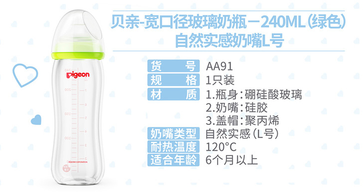 【一般贸易】贝亲宽口玻璃奶瓶240ml配L奶嘴AA91+AA92