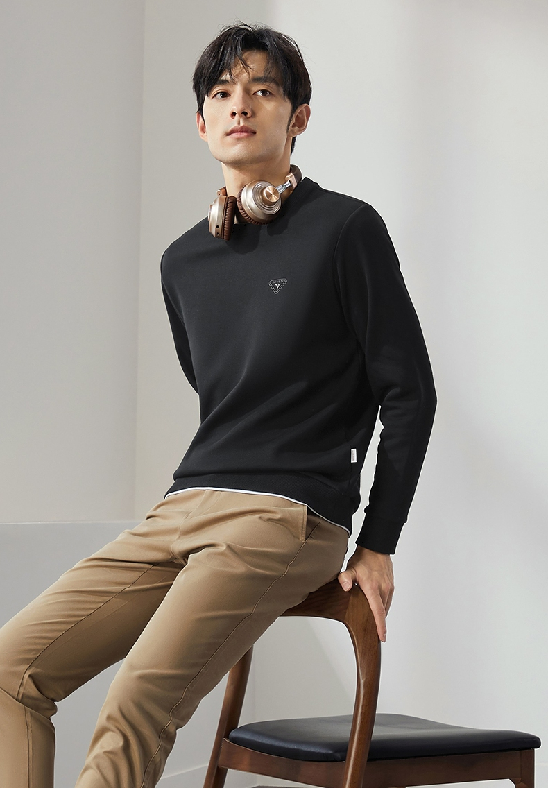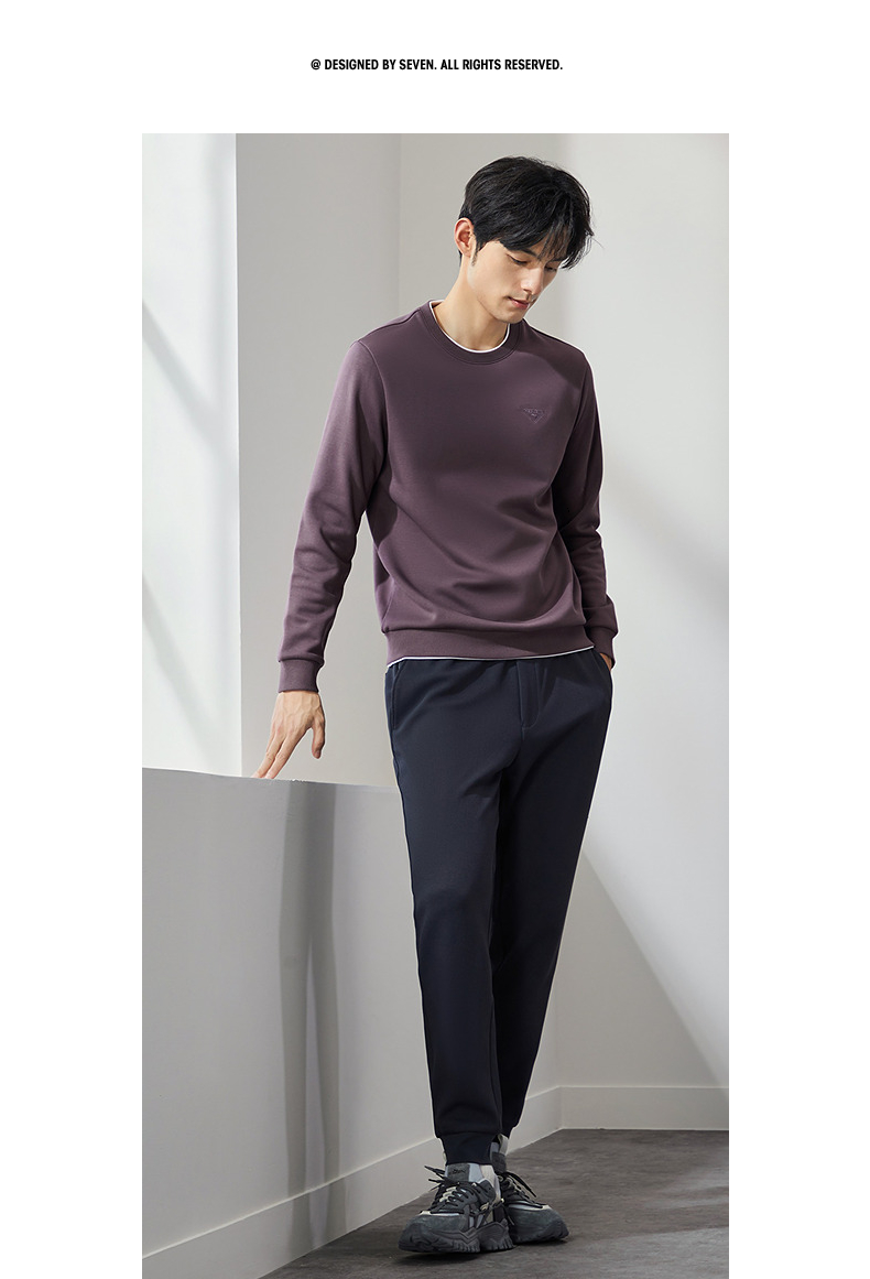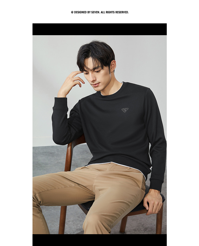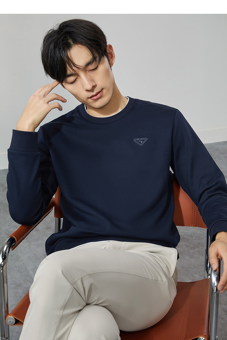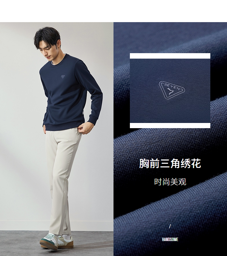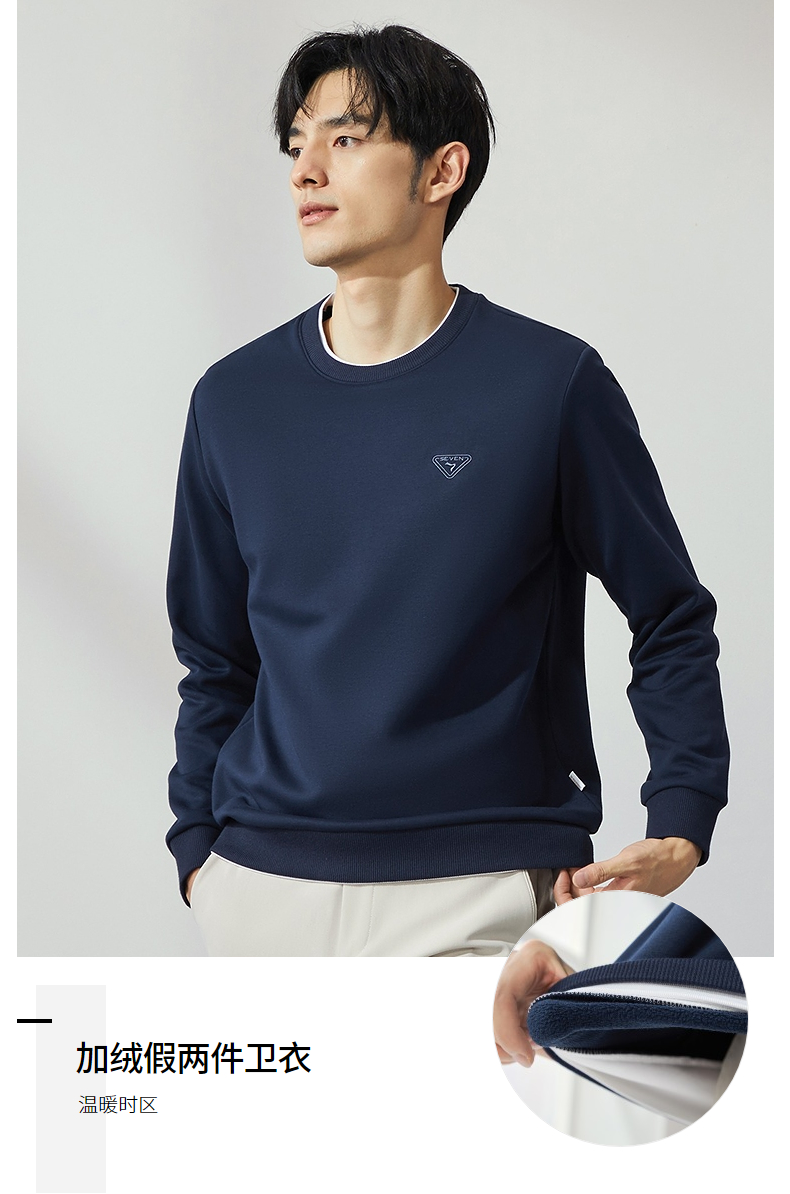 柒牌圆领卫衣男2024秋冬新款时尚休闲加绒保暖假两件男士套头上衣 127W70610