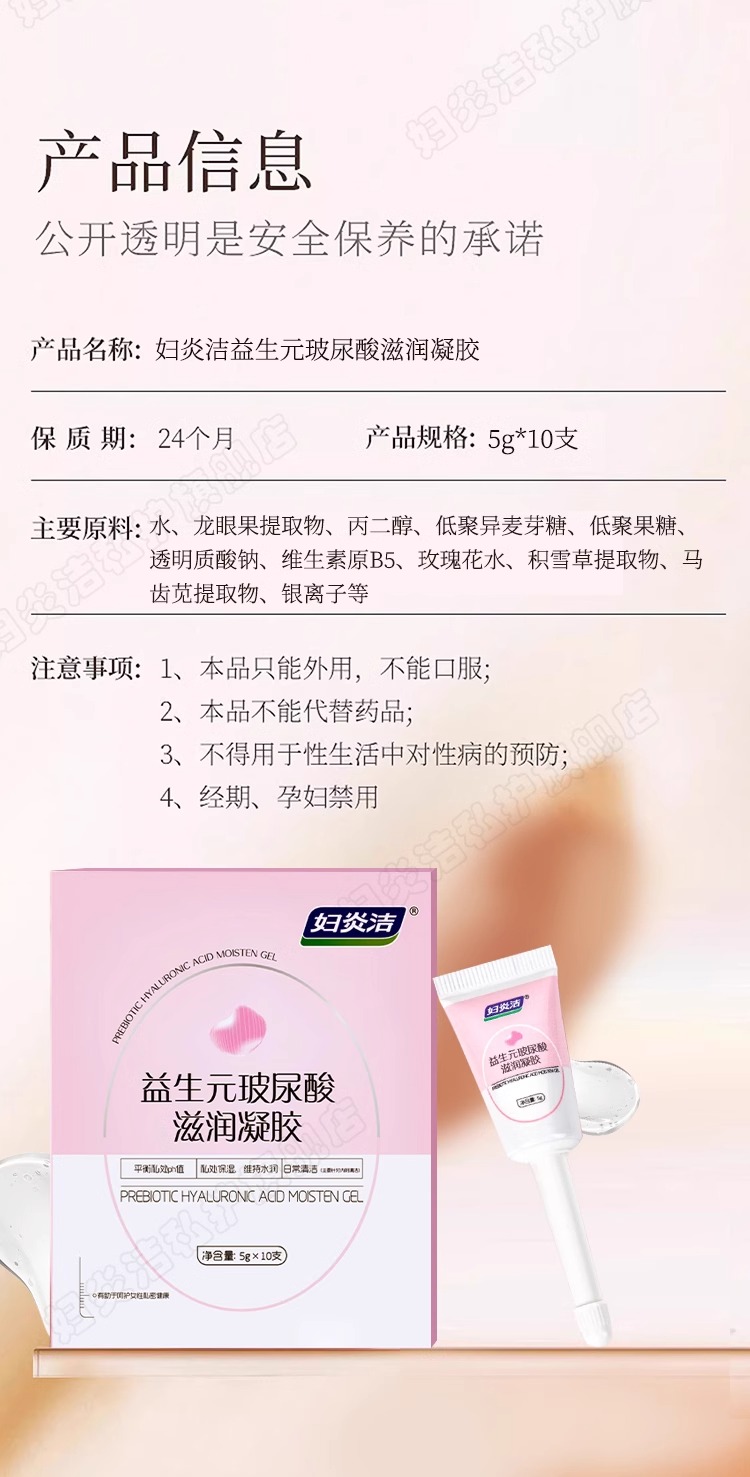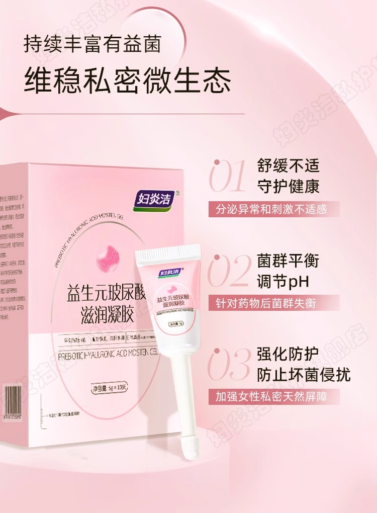 妇炎洁凝胶私处护理液益生菌益生元玻尿酸水润抑菌私密保养女性干涩补水
