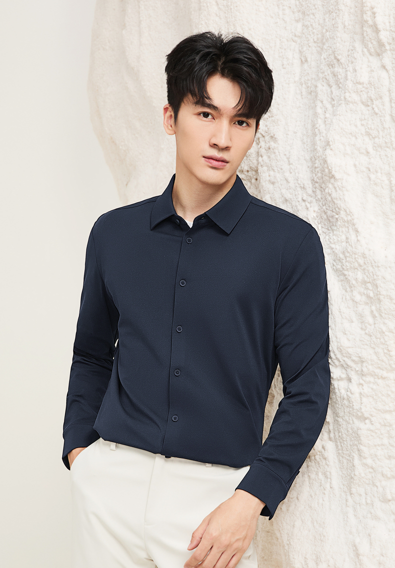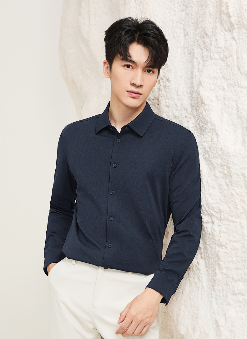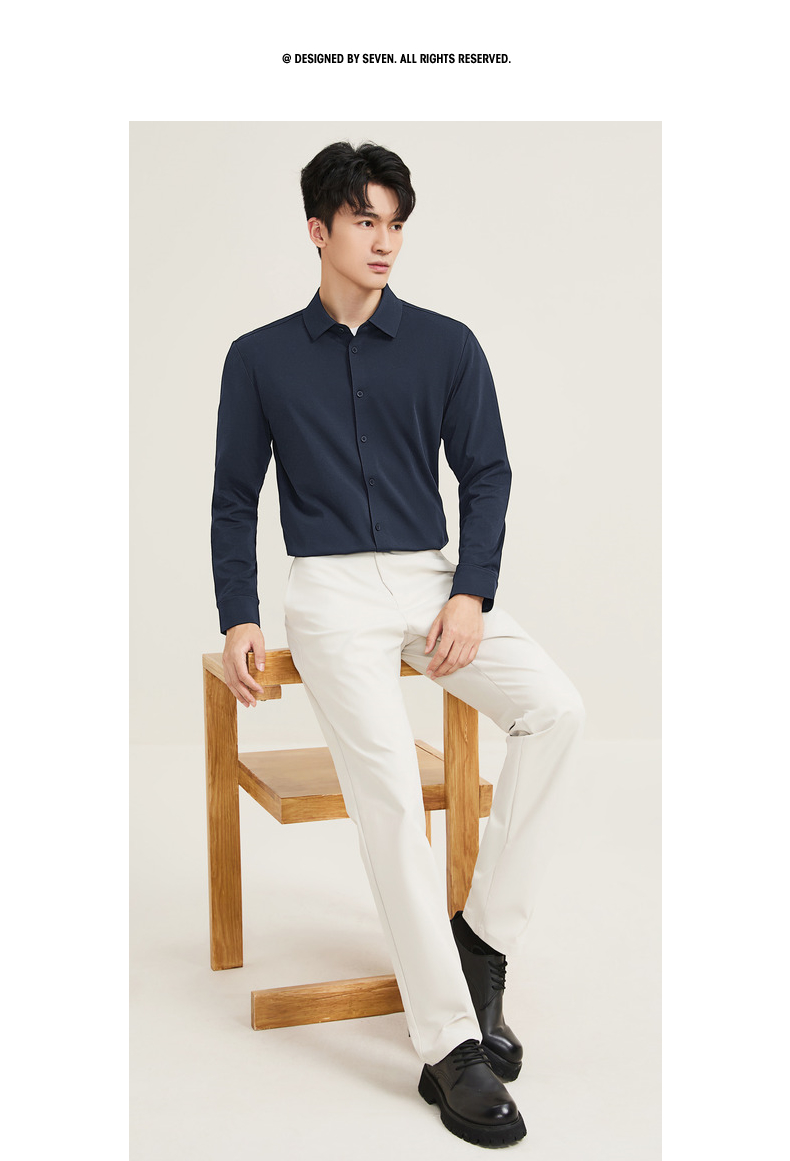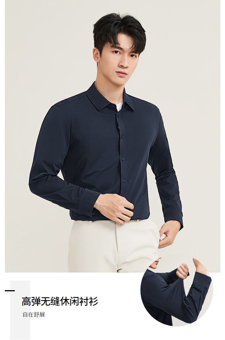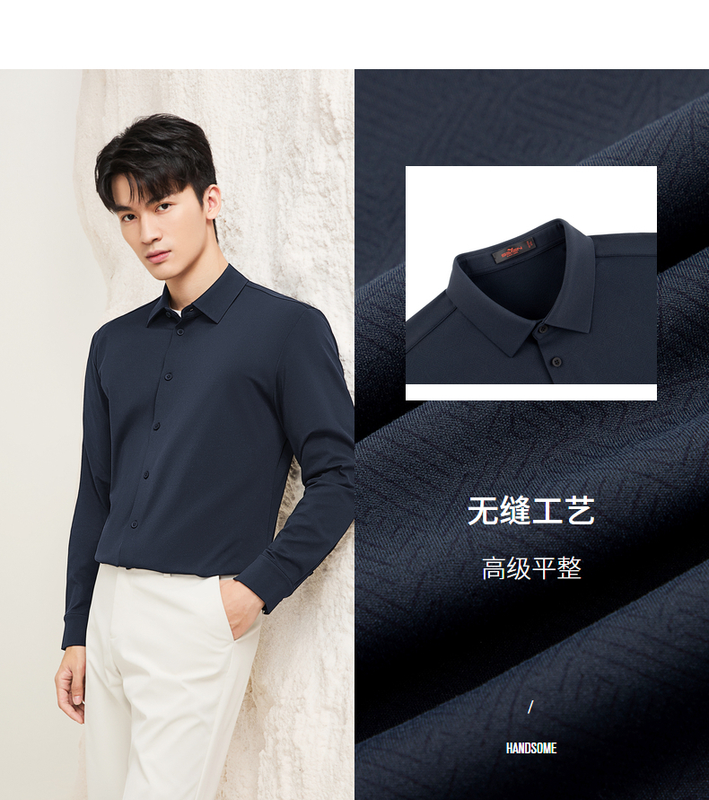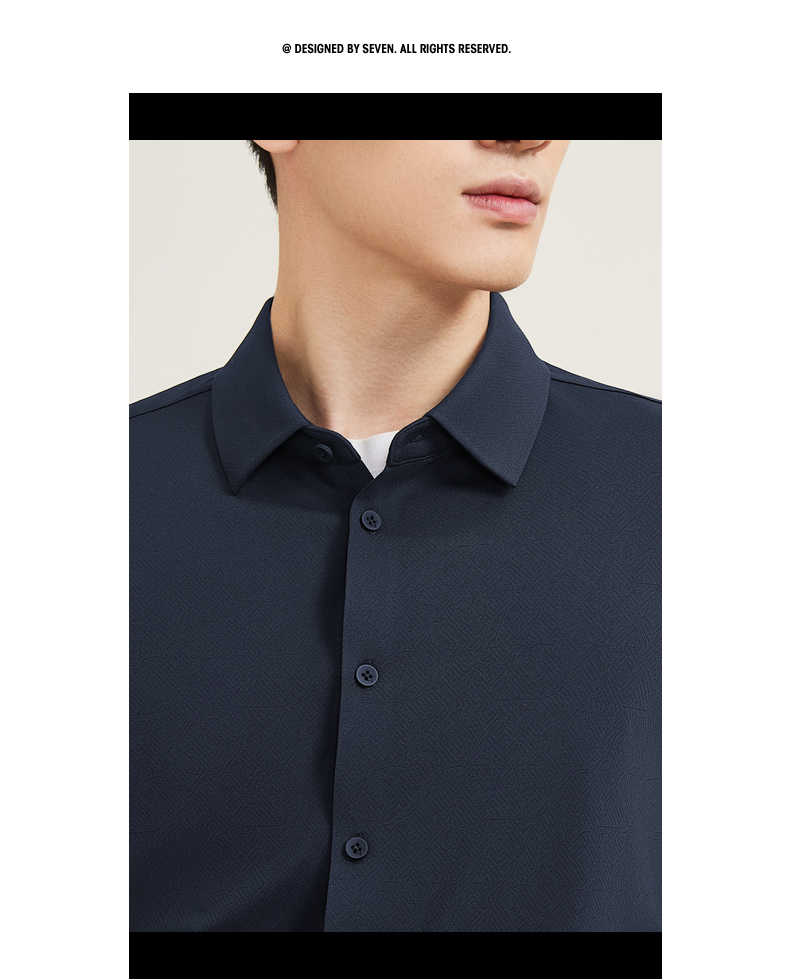 【无缝/高弹衬衫】柒牌男装秋季休闲翻领几何印花针织长袖衬衫男129A70510