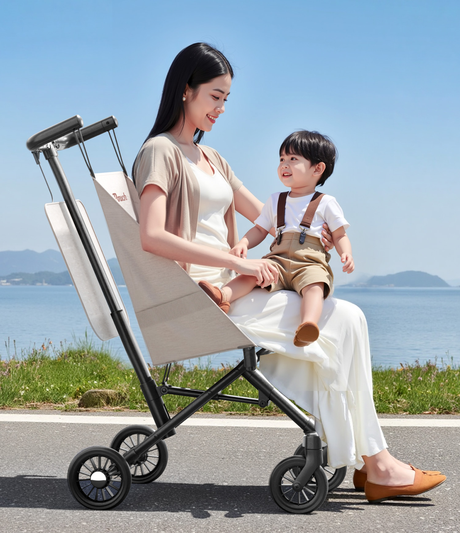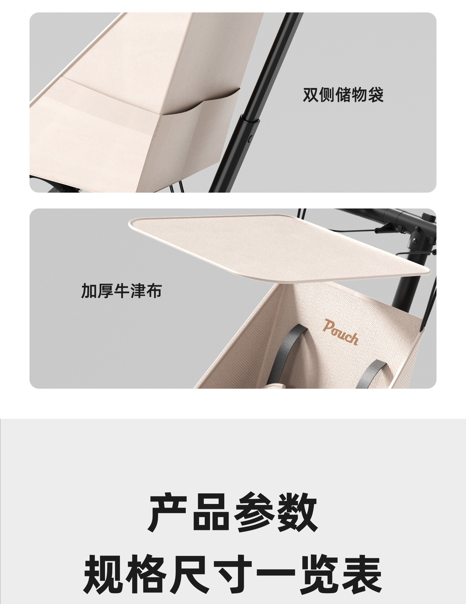 POUCH P1轻便口袋车 6-36月儿童婴儿推车可折叠一键收车溜娃车 灰白色
