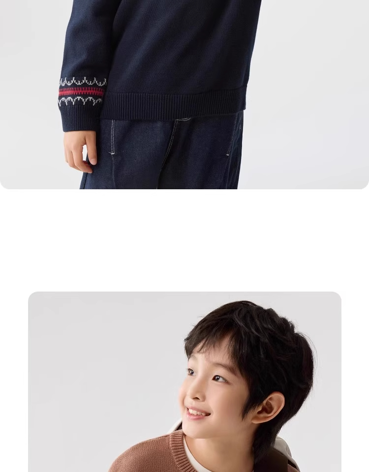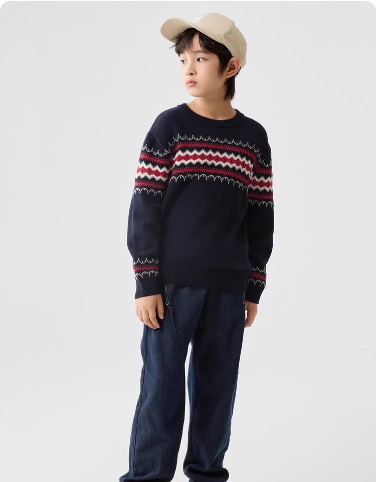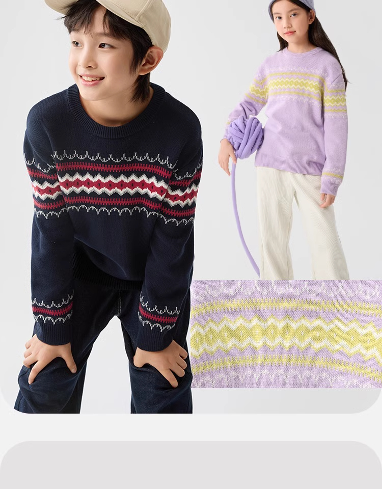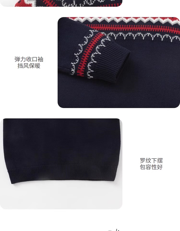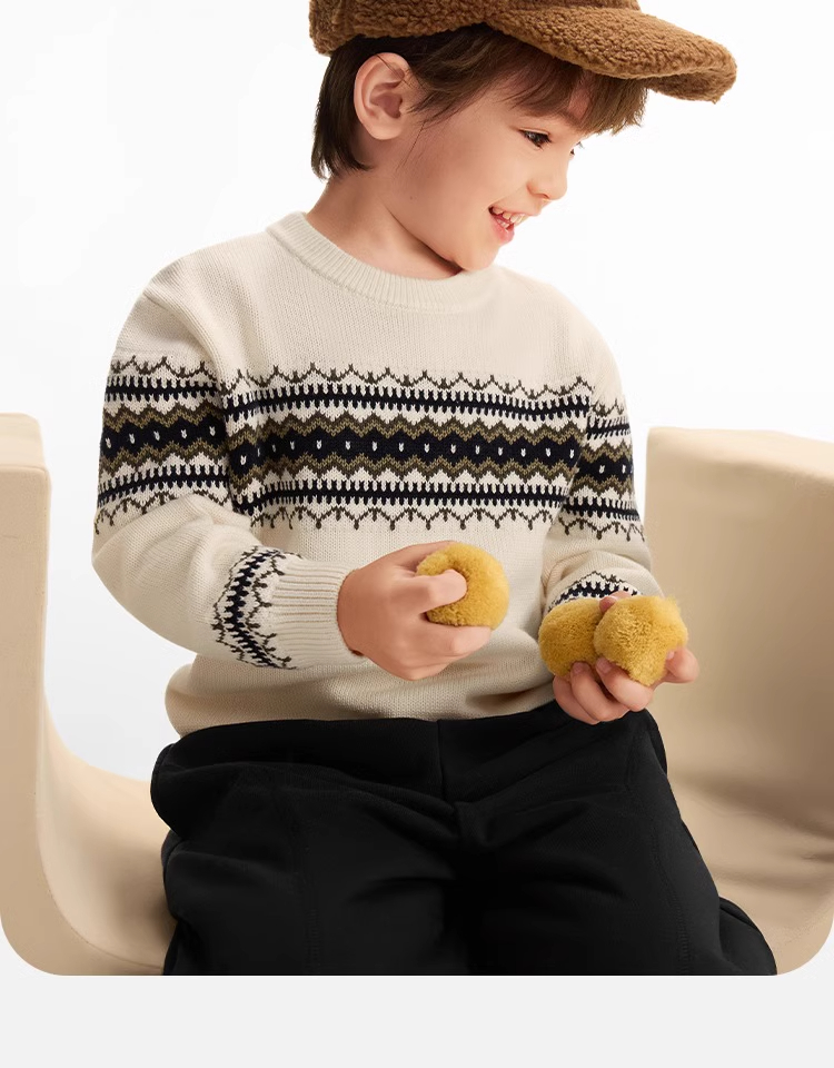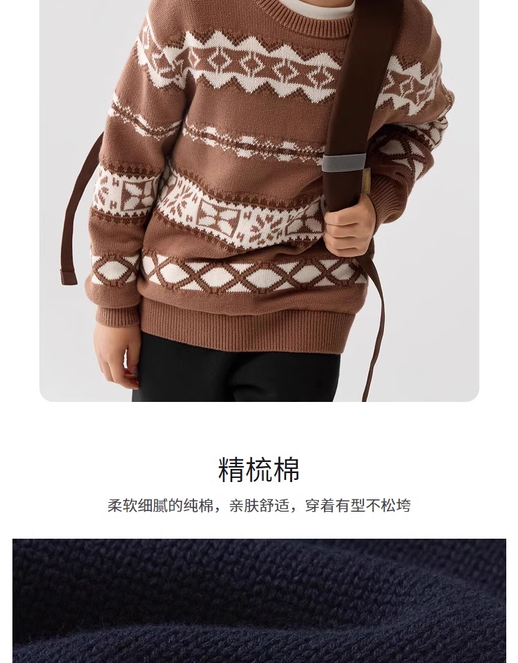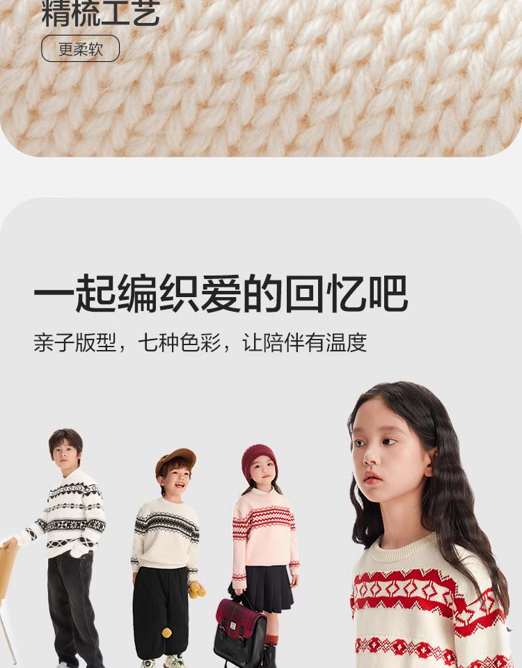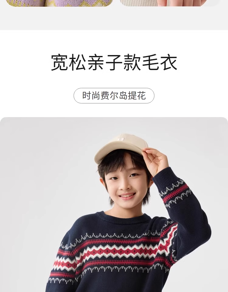 巴拉巴拉童装男童女童毛衣亲子纯棉内搭秋冬装新款提花针织衫