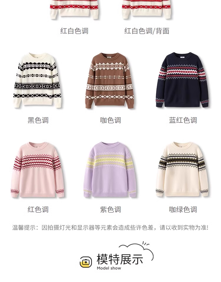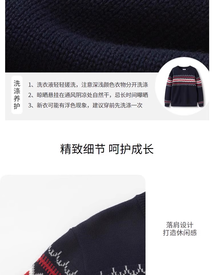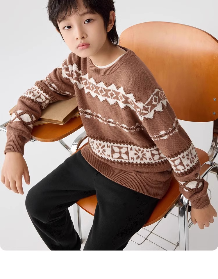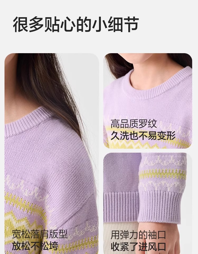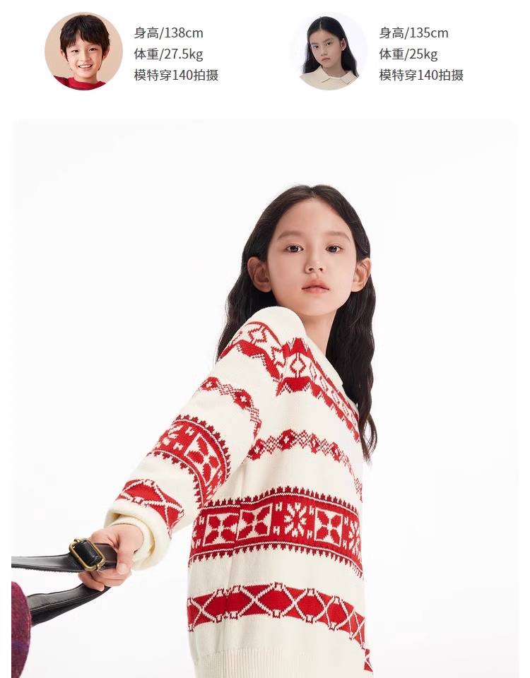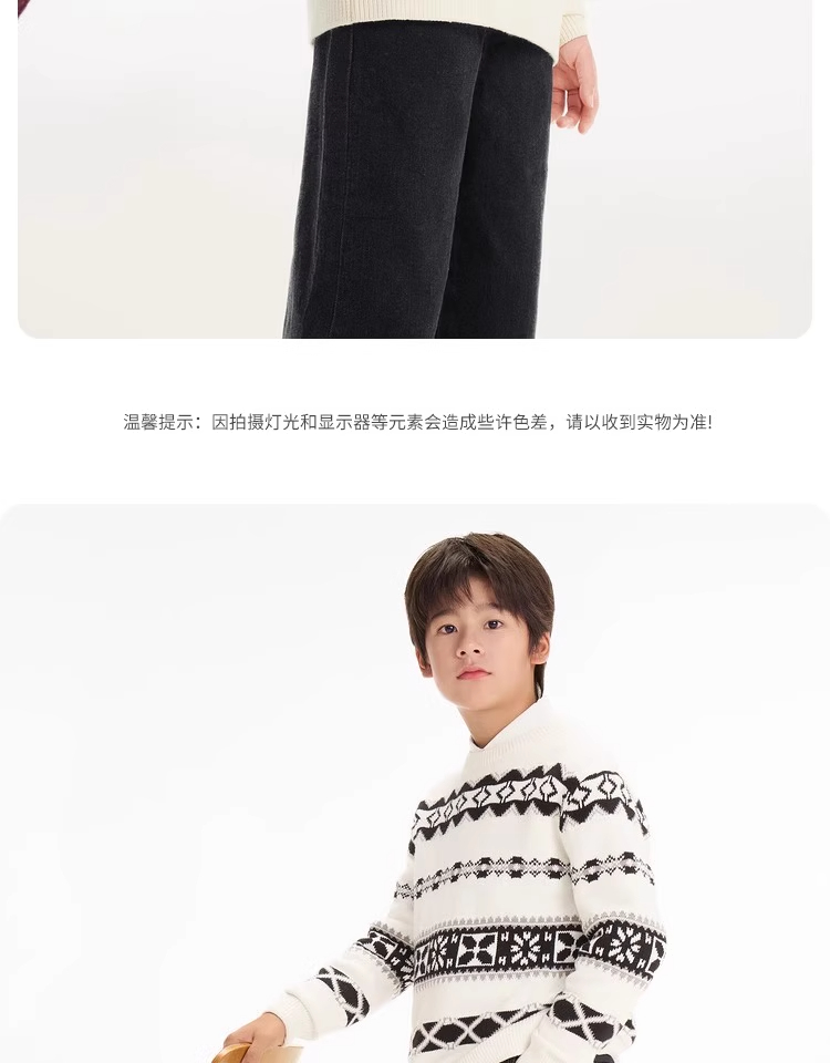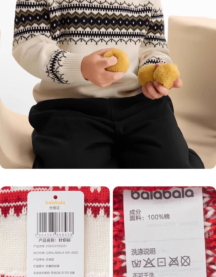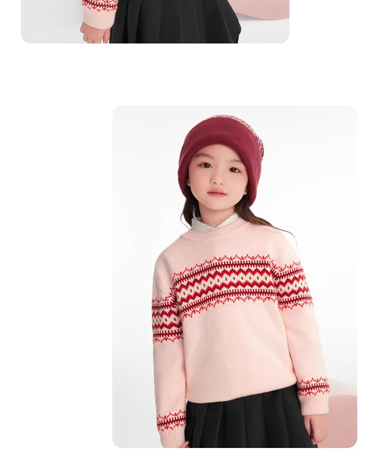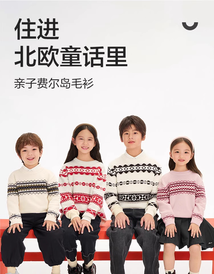 巴拉巴拉童装男童女童毛衣亲子纯棉内搭秋冬装新款提花针织衫