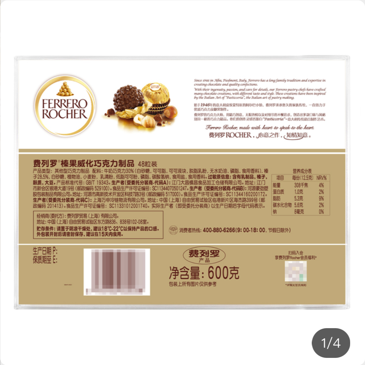 【保税仓发货 效期至26年6月14日】Ferrero费列罗巧克力榛果夹心巧克力零食婚礼伴手礼新年礼物48粒