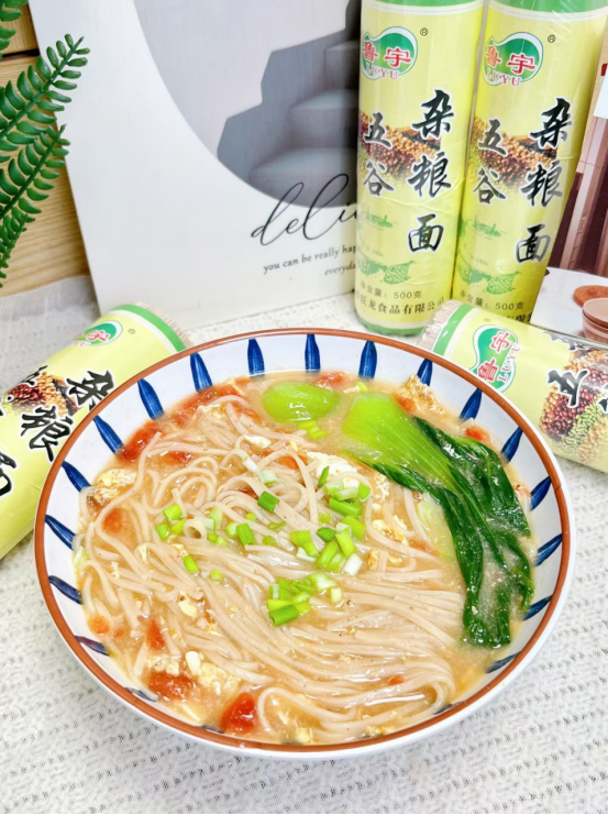 【鲁宇五谷杂粮面5卷】🔥 爽滑Q弹,✨口感筋道,嘎嘎好吃,🌵最重要不易发胖 💕汤面、拌面、炒面、卤面...怎么做都好吃三高人群、💥减脂人士、上班族、学生党必备❗